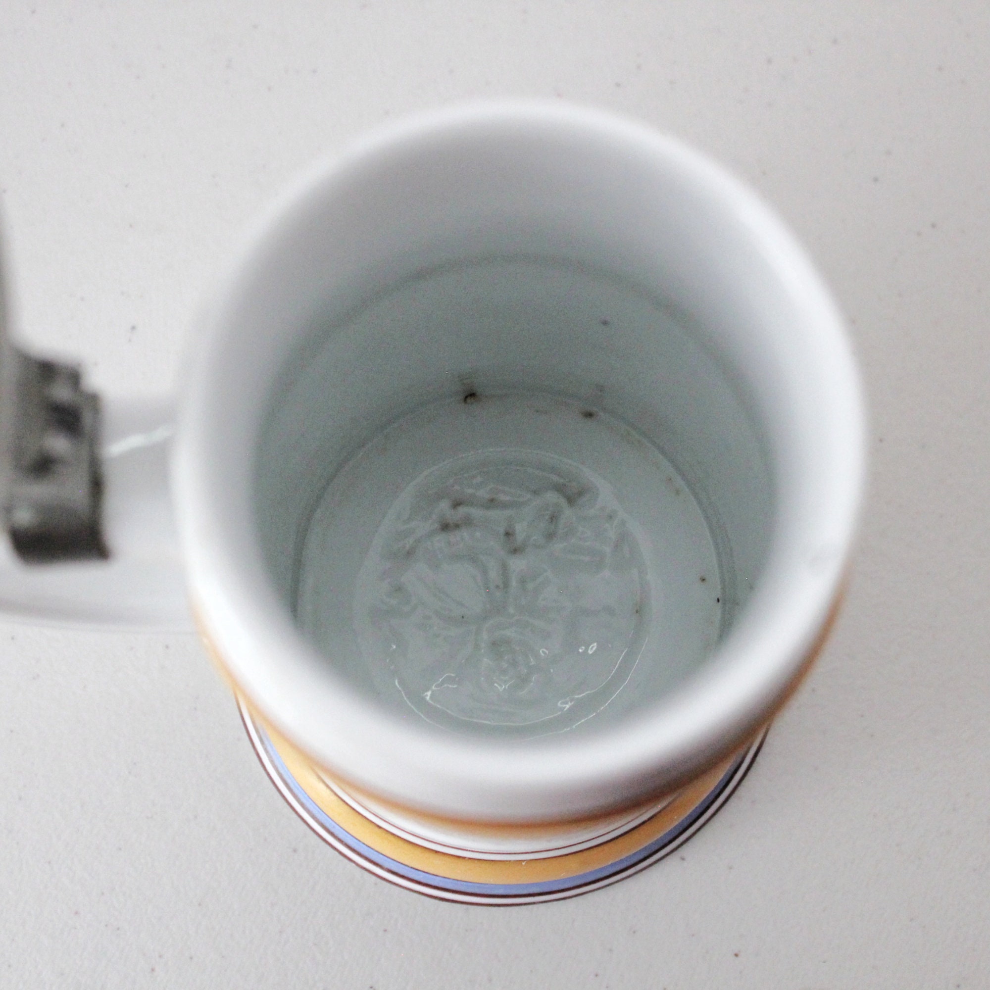 The stein has no chips or cracks, just some minor soiling and wear to a few areas of the text and graphics.