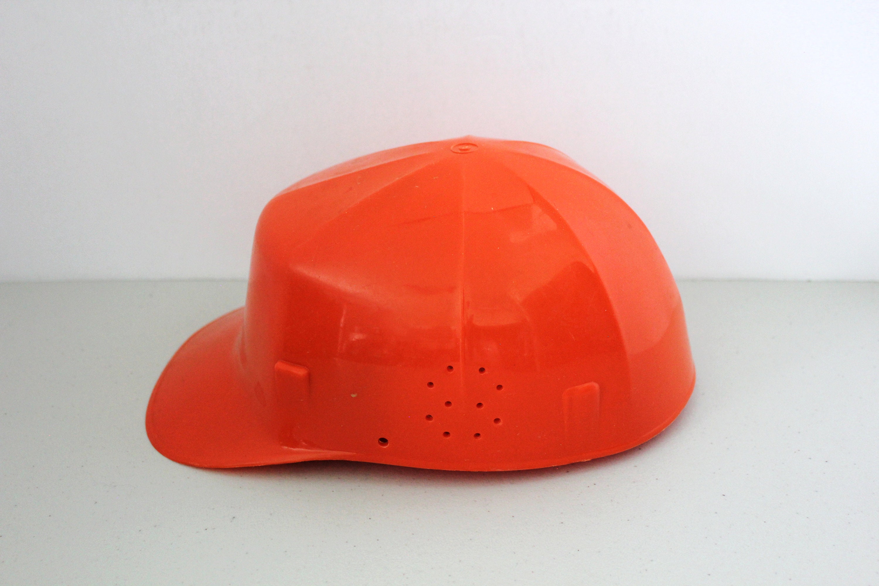 A vintage Hard Boiled ED Bullard orange bump cap plastic hat.