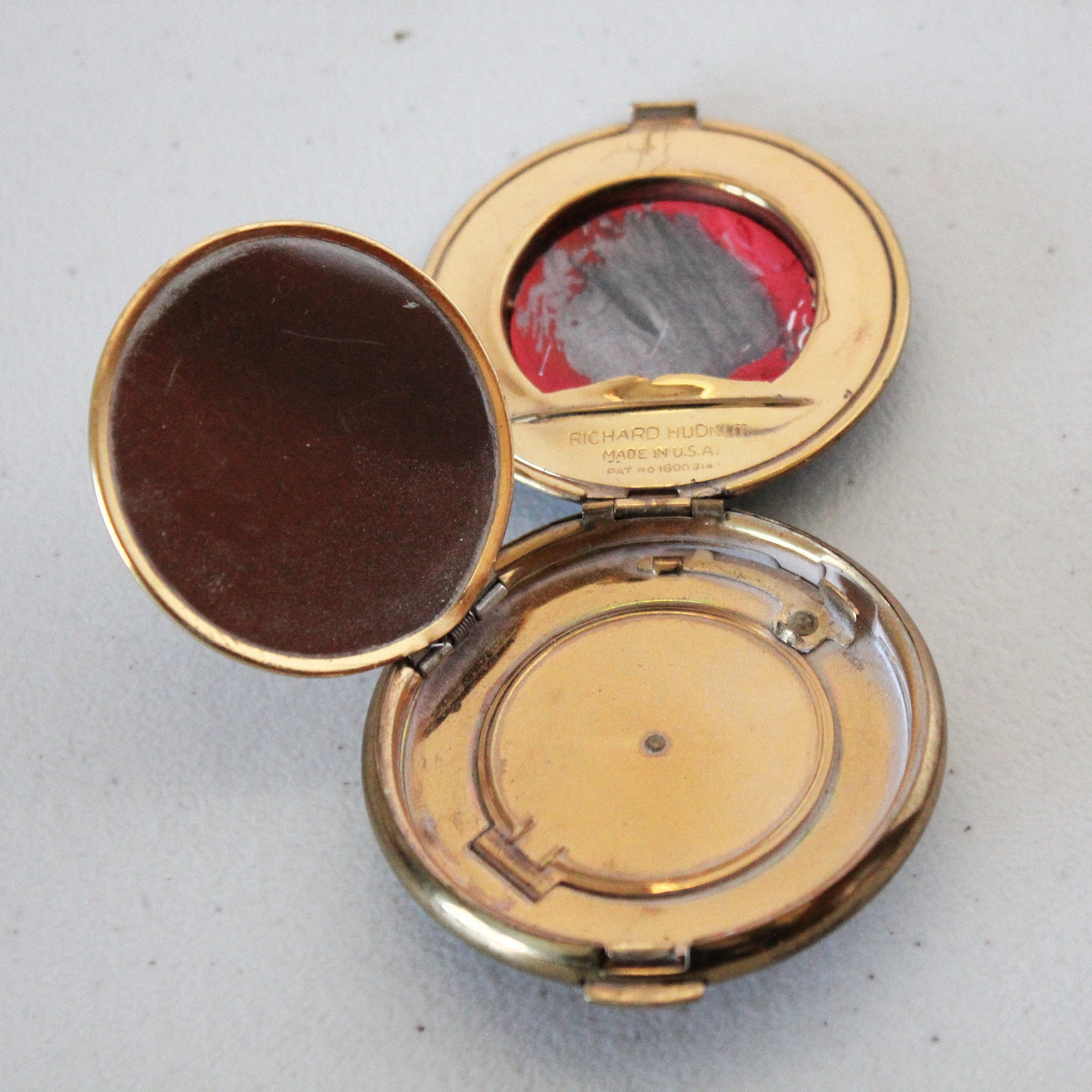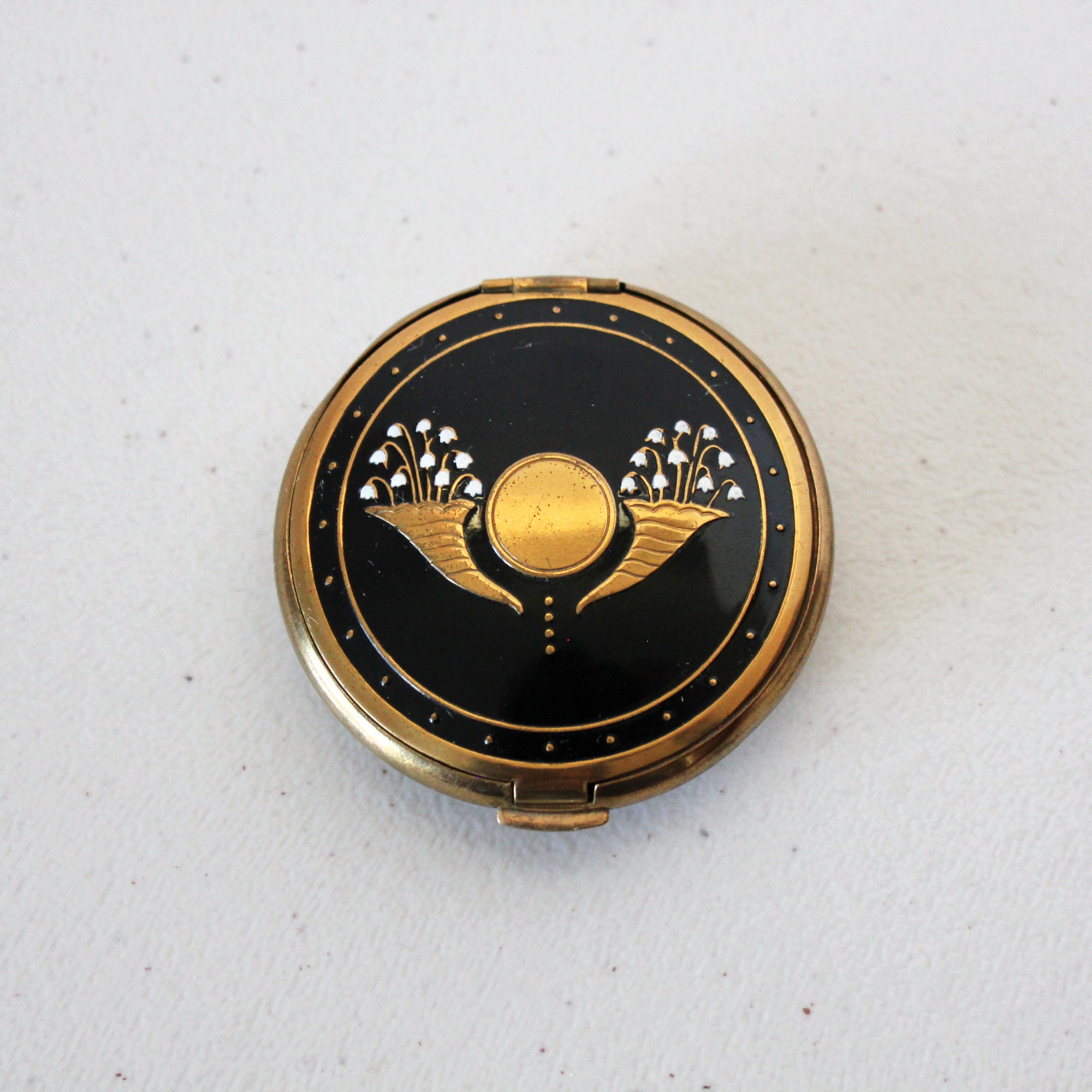 A vintage 1930s era Richard Hudnut compact in black and gold tones. Made in the USA.