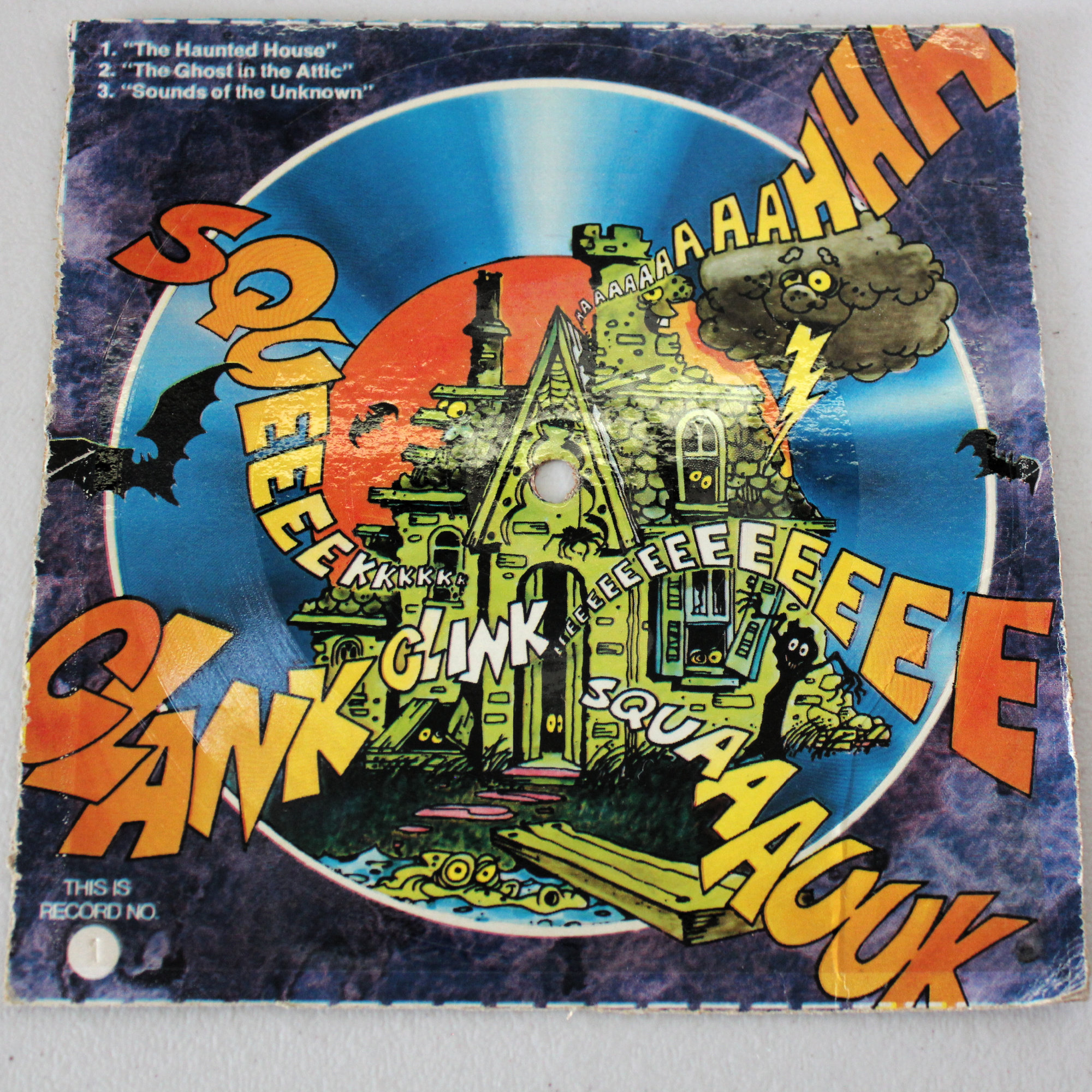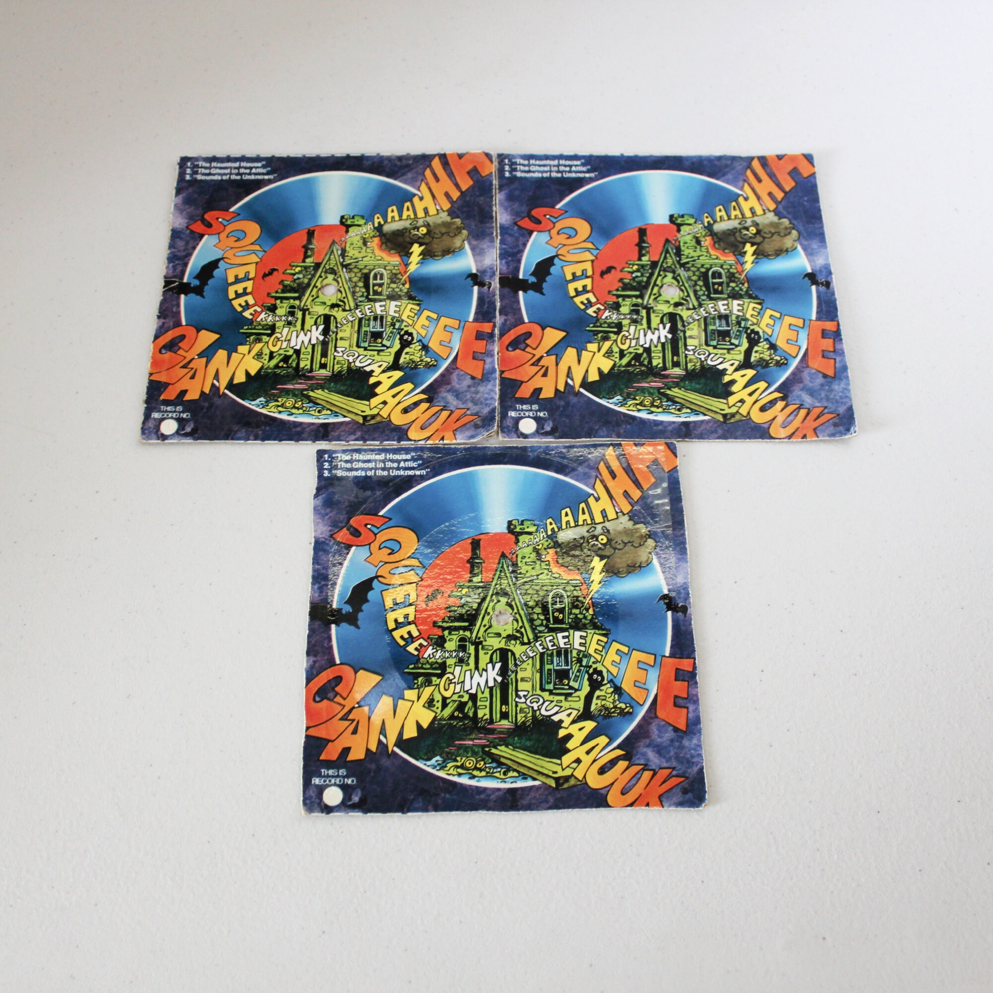 A complete set of all 3 cardboard records that were cereal premiums for Honeycombs in the 1970s. You get record number 1, 2 and 3 which feature a haunted house graphic.