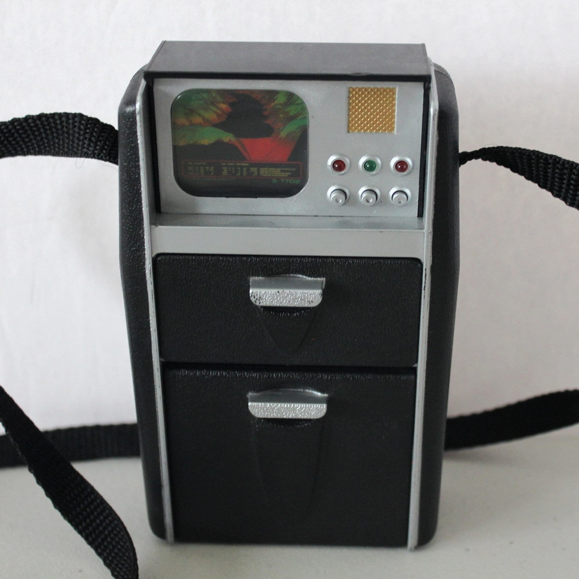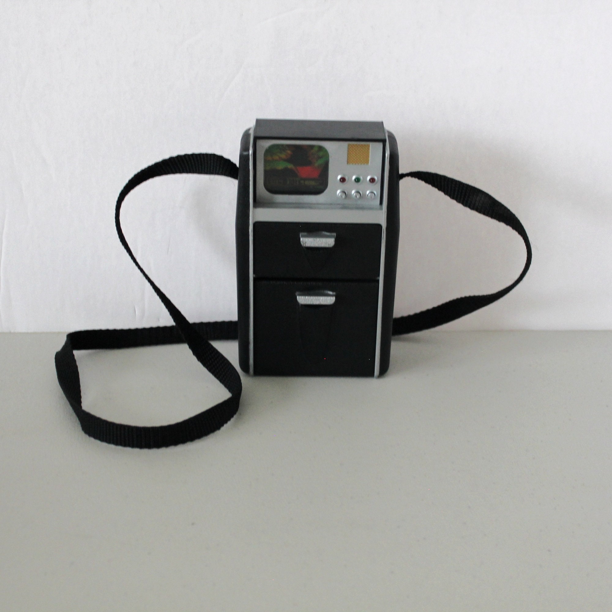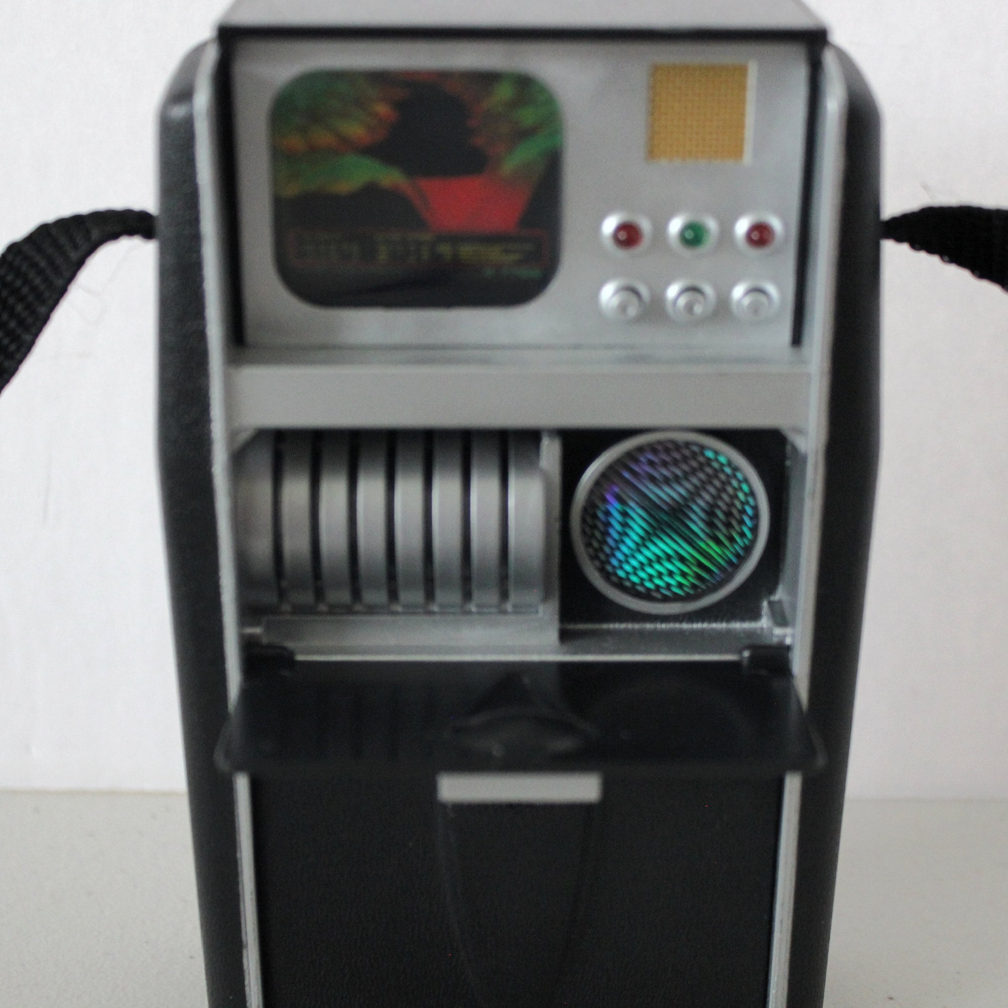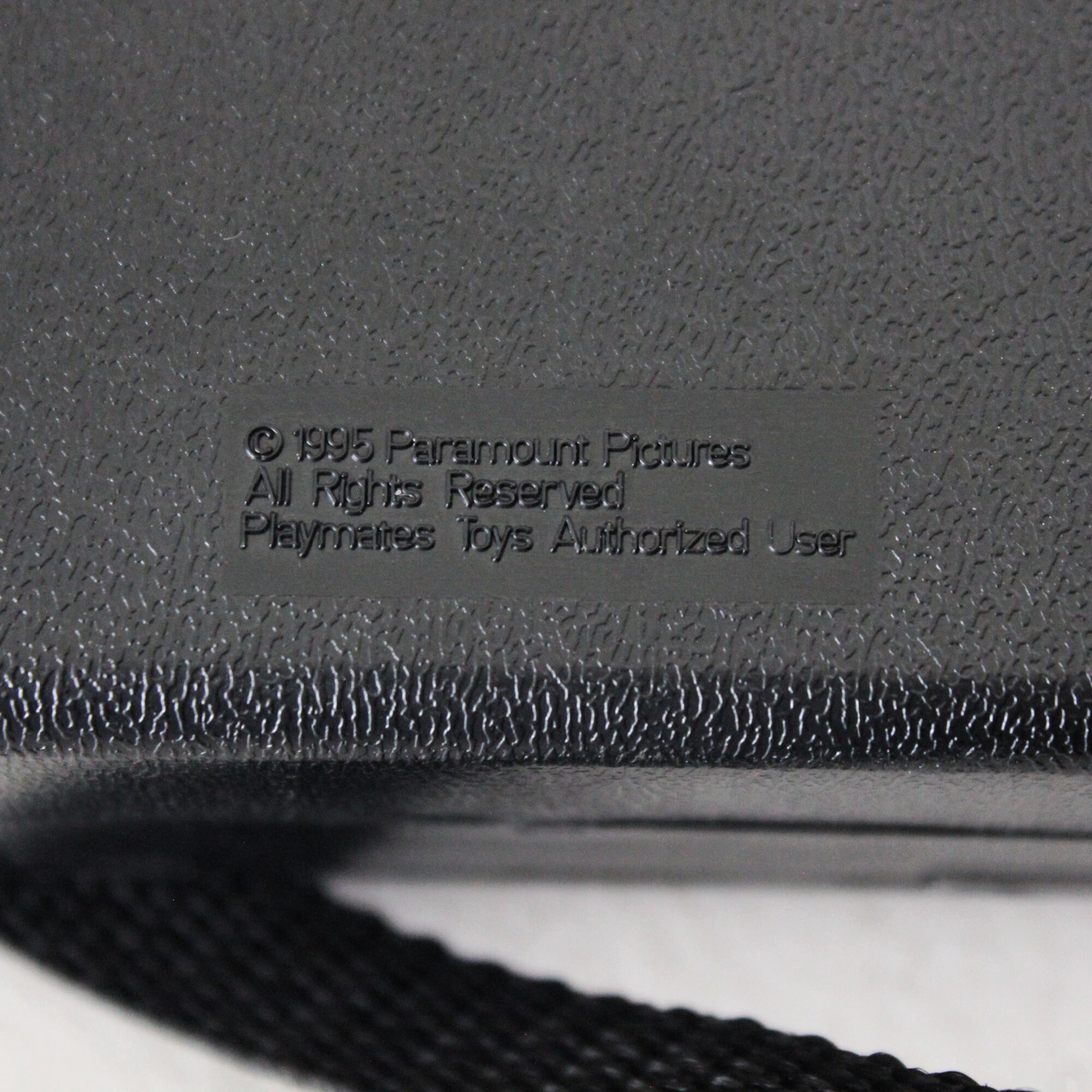 A vintage 1995 copyright Paramount Pictures Star Trek tricorder electronic toy device with carrying strap. Battery operated with 2 AA batteries NOT included. Tested and in working order.