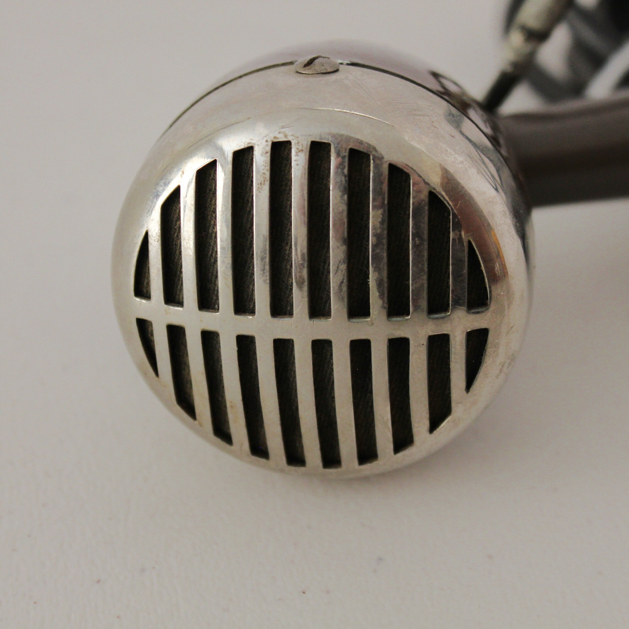 This is a vintage microphone that has been cut at the cord from another device. There are no maker marks or identifying numbers on it.