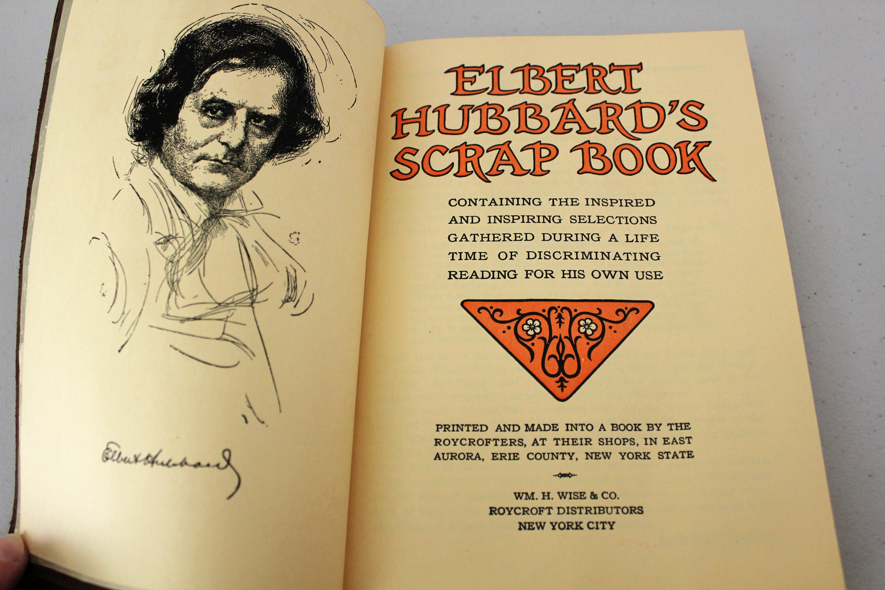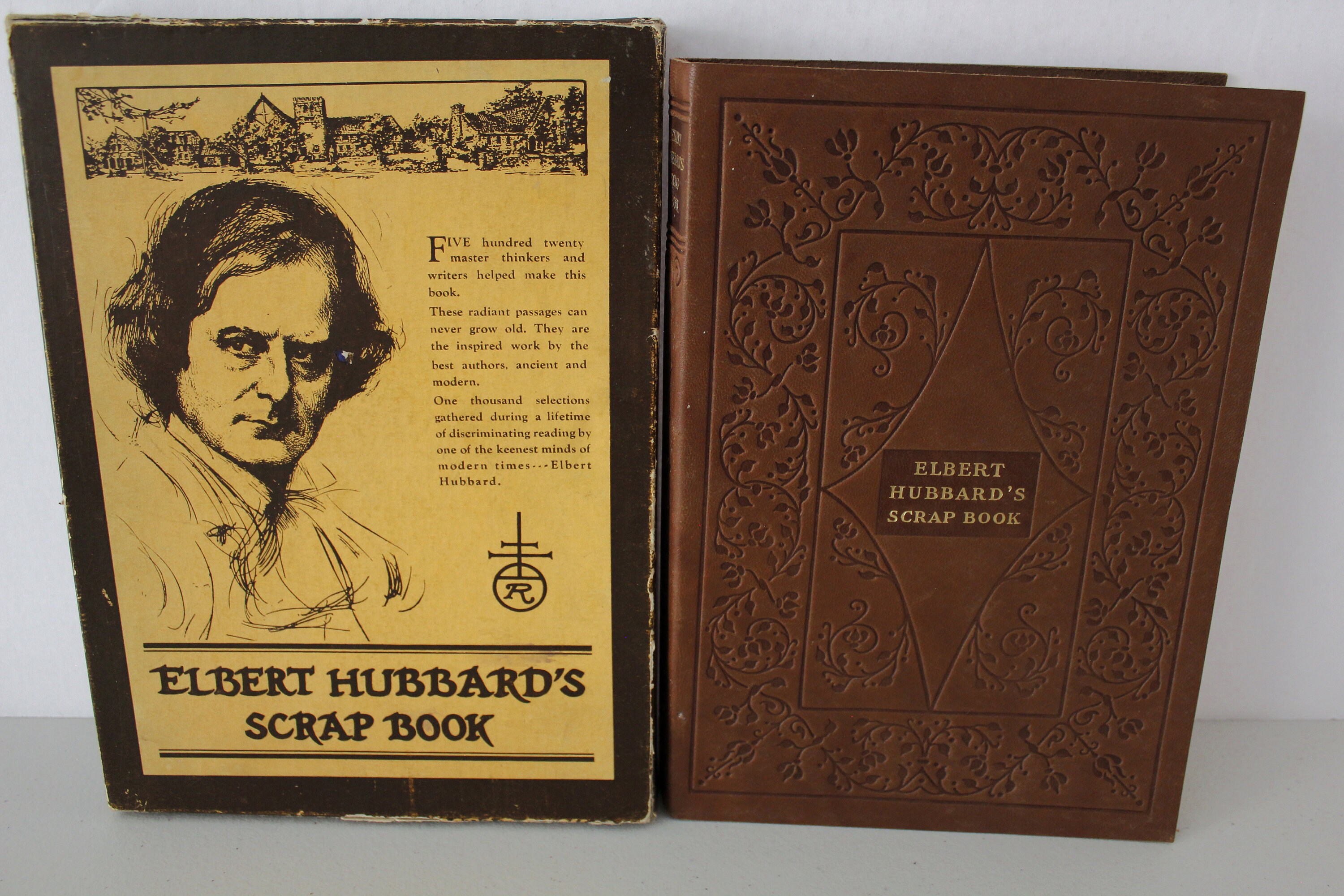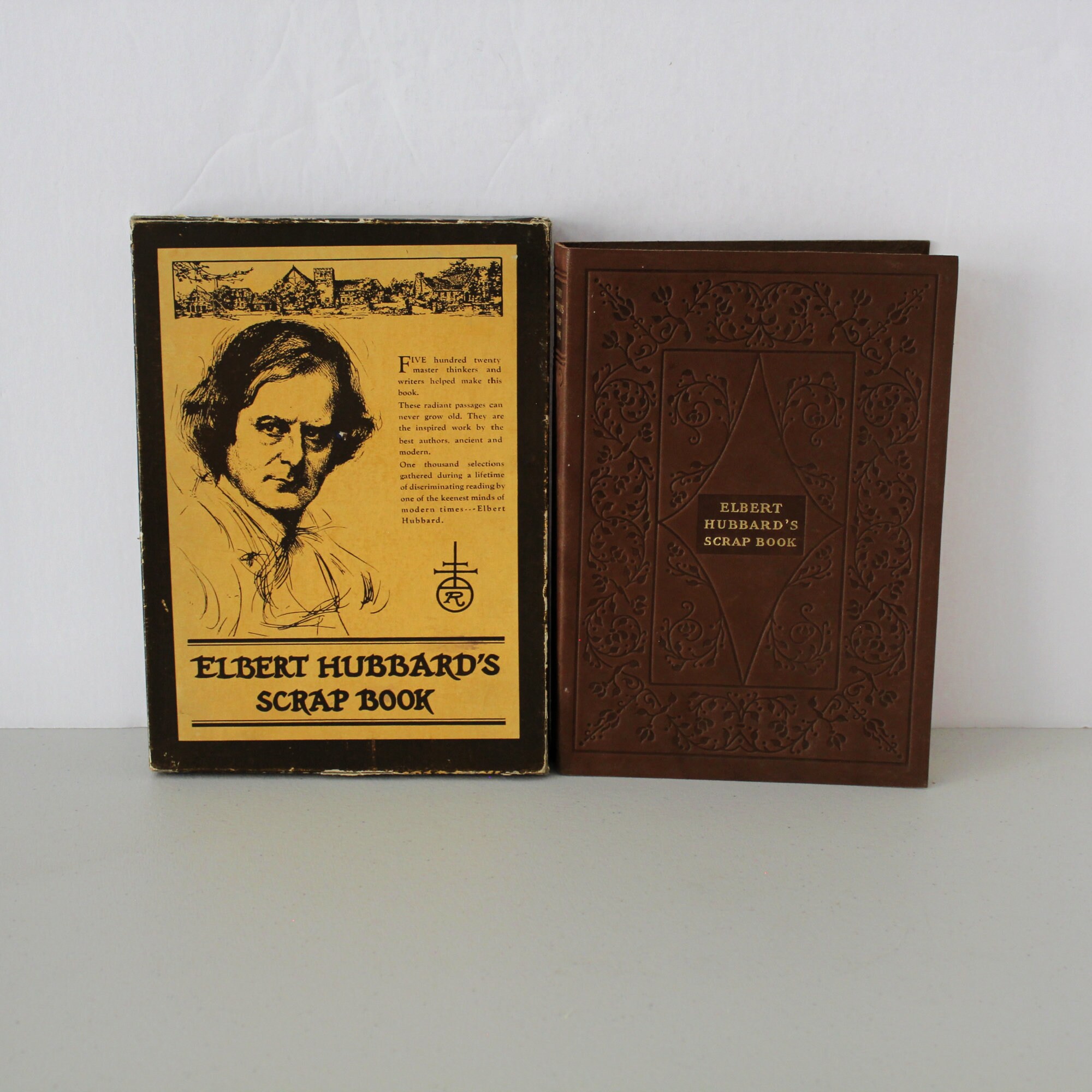 This is Elbert Hubbard's Scrap Book, complete with original box. It is leather bound and copyright 1923 by The Roycrofters.