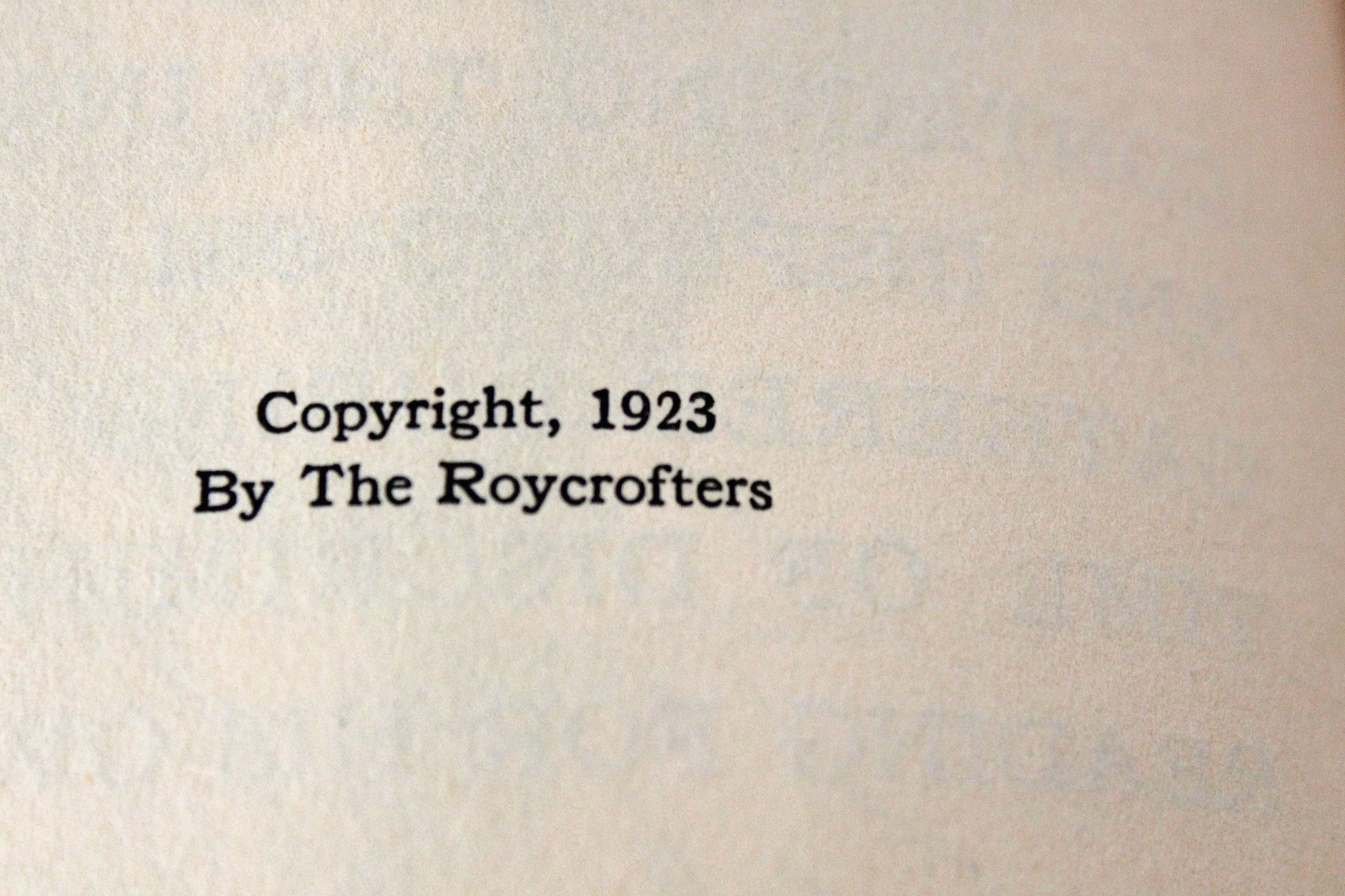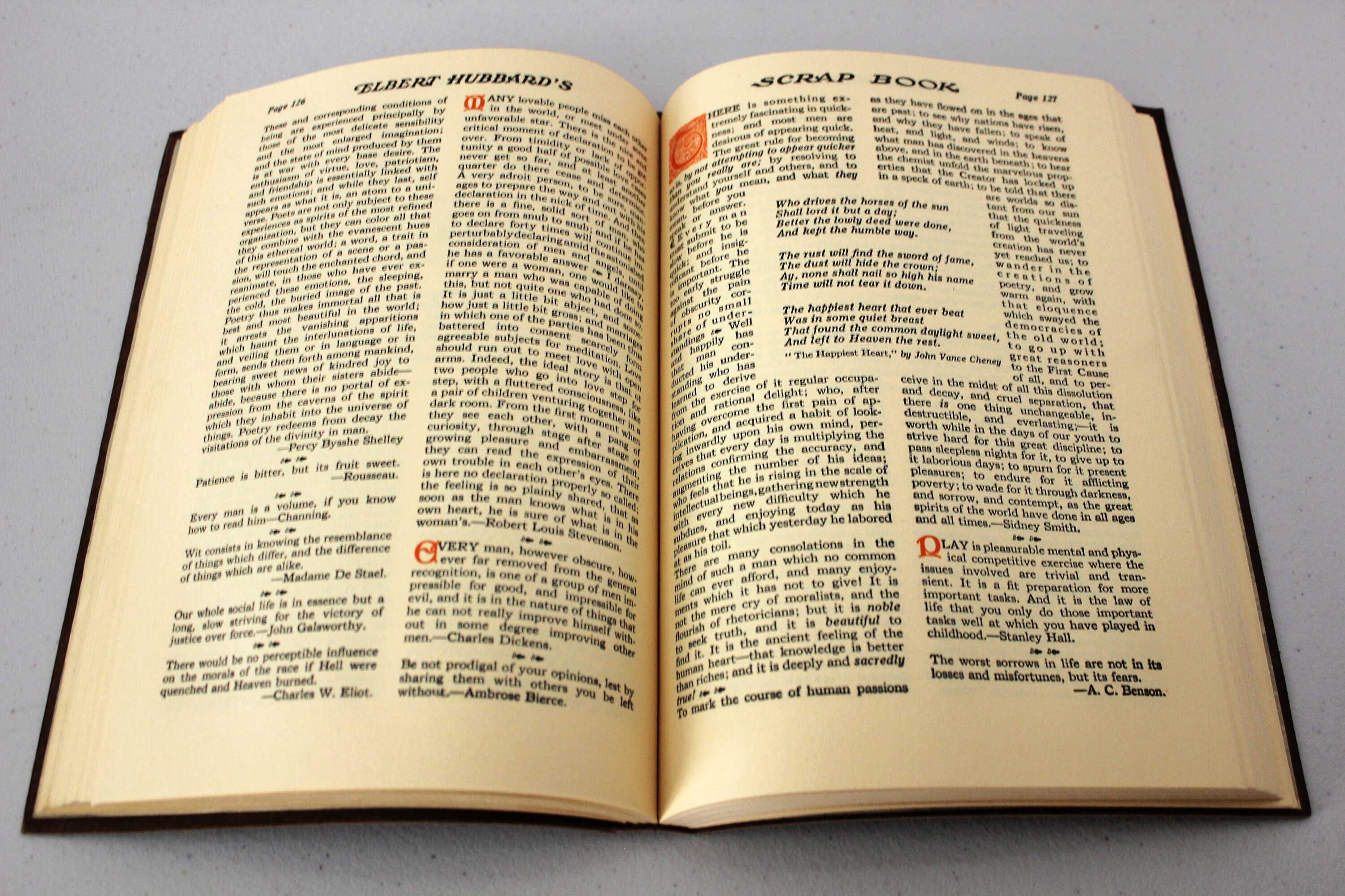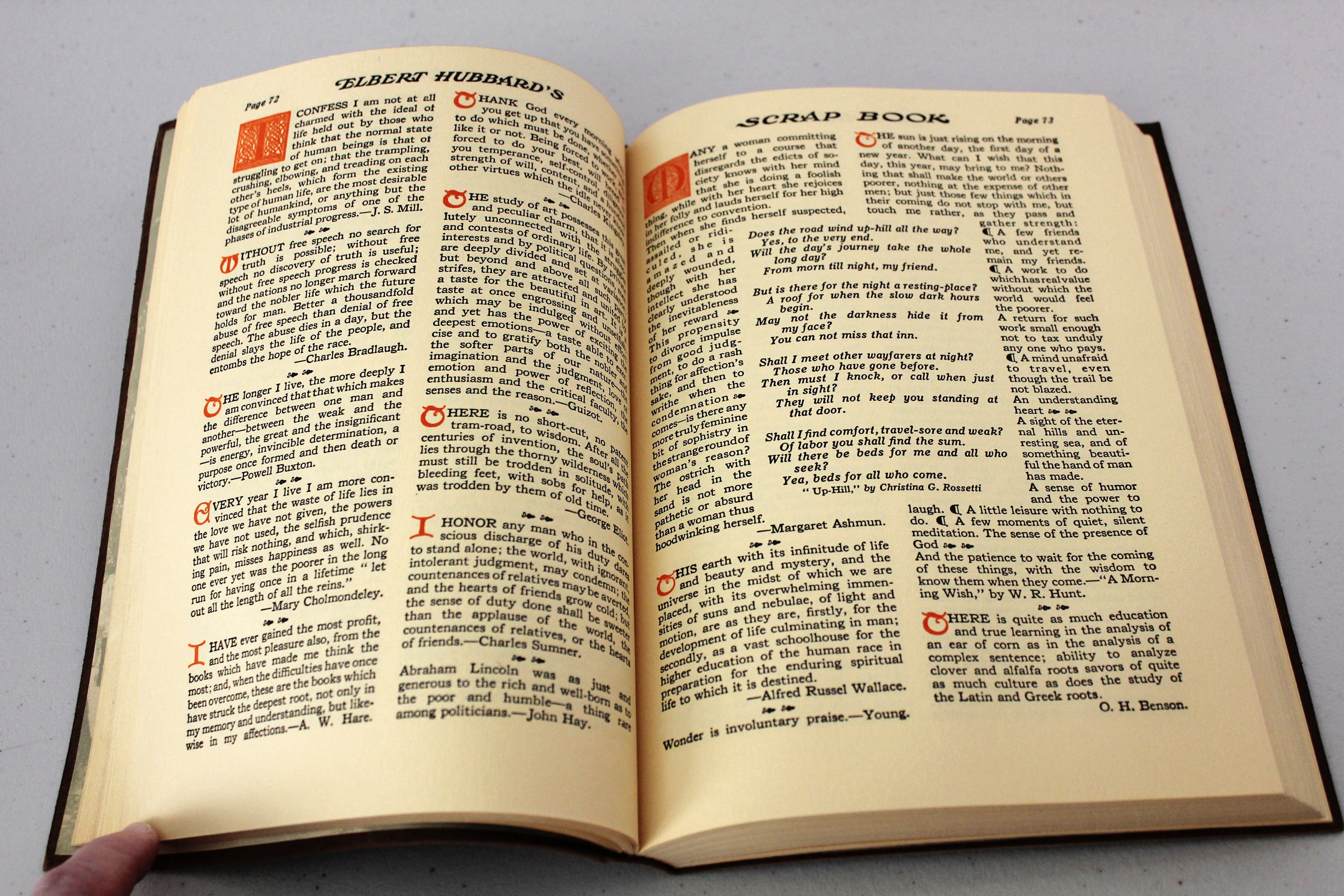 This is Elbert Hubbard's Scrap Book, complete with original box. It is leather bound and copyright 1923 by The Roycrofters.