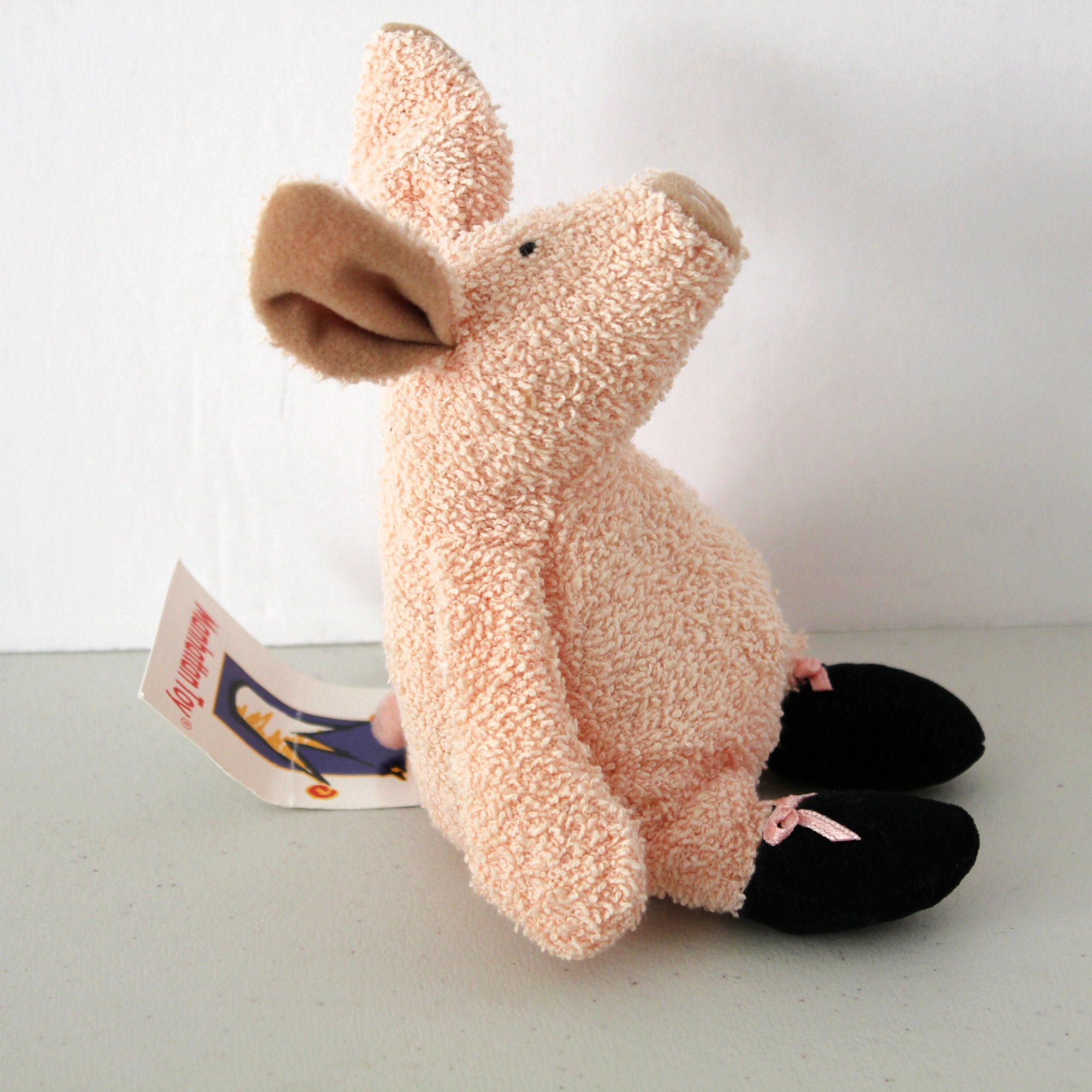 This is a Manhattan Toy Pierre Pig Tip Toes stuffed toy pink pink with brown ears and nose, and black feet. Comes with the original hang tag.