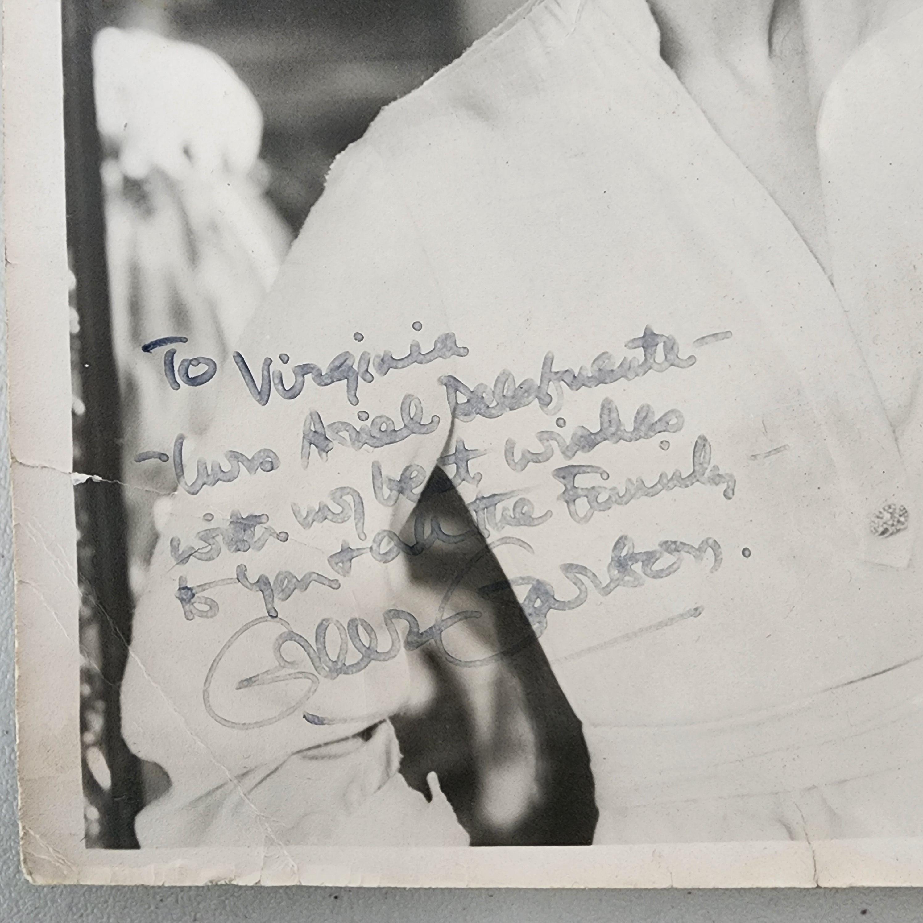 An autographed 8" x 10" black and white photo of Greer Garson from 1968. The photo is inscribed to Virginia in the lower left. It was acquired by the now 81 year old VIrginia who said her brother Jerry did Seattle stage work and met and worked with her and a couple other big names that I have listed also at this time.