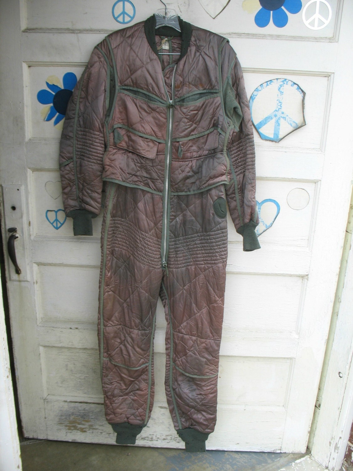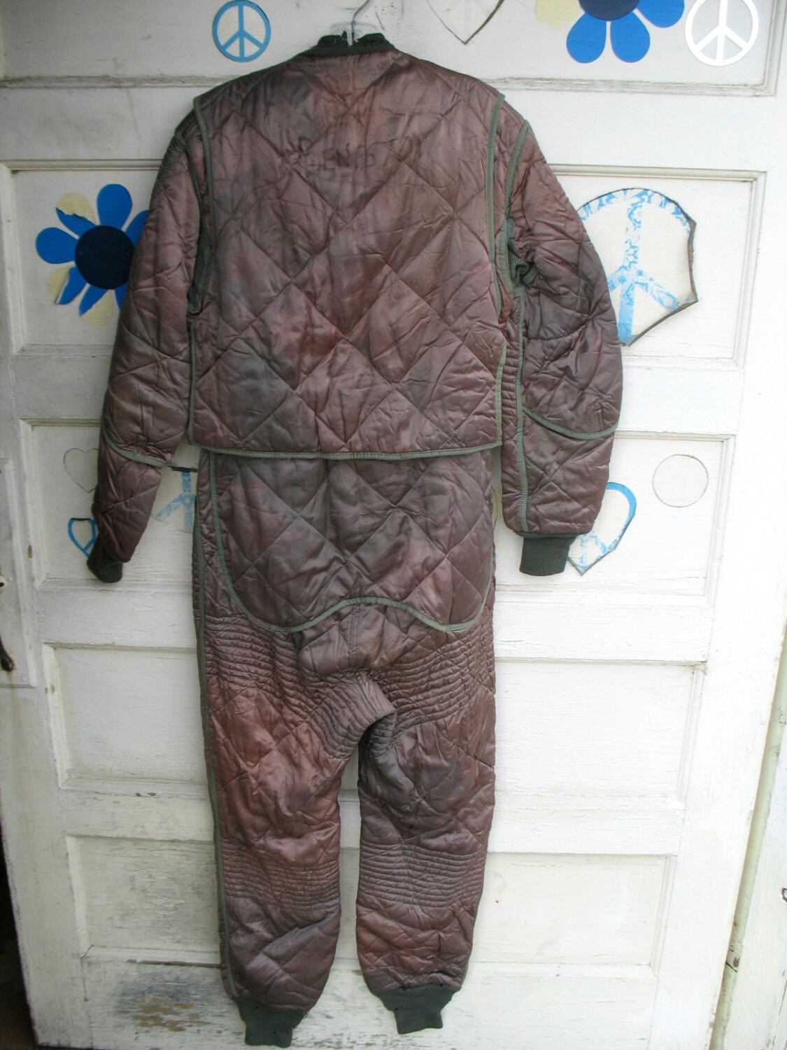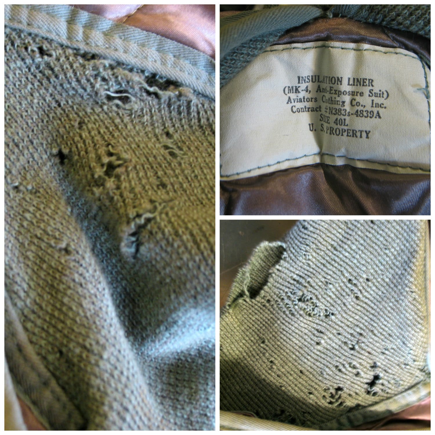 A WWII, world war 2 era Aviators Anti Exposure Suit. Tag reads (see last picture) "INSULATION LINER/(MIK-4, Anti-Exposure Suit)/Aviators Clothing Co.,Inc./Size 40L/U.S. Property".