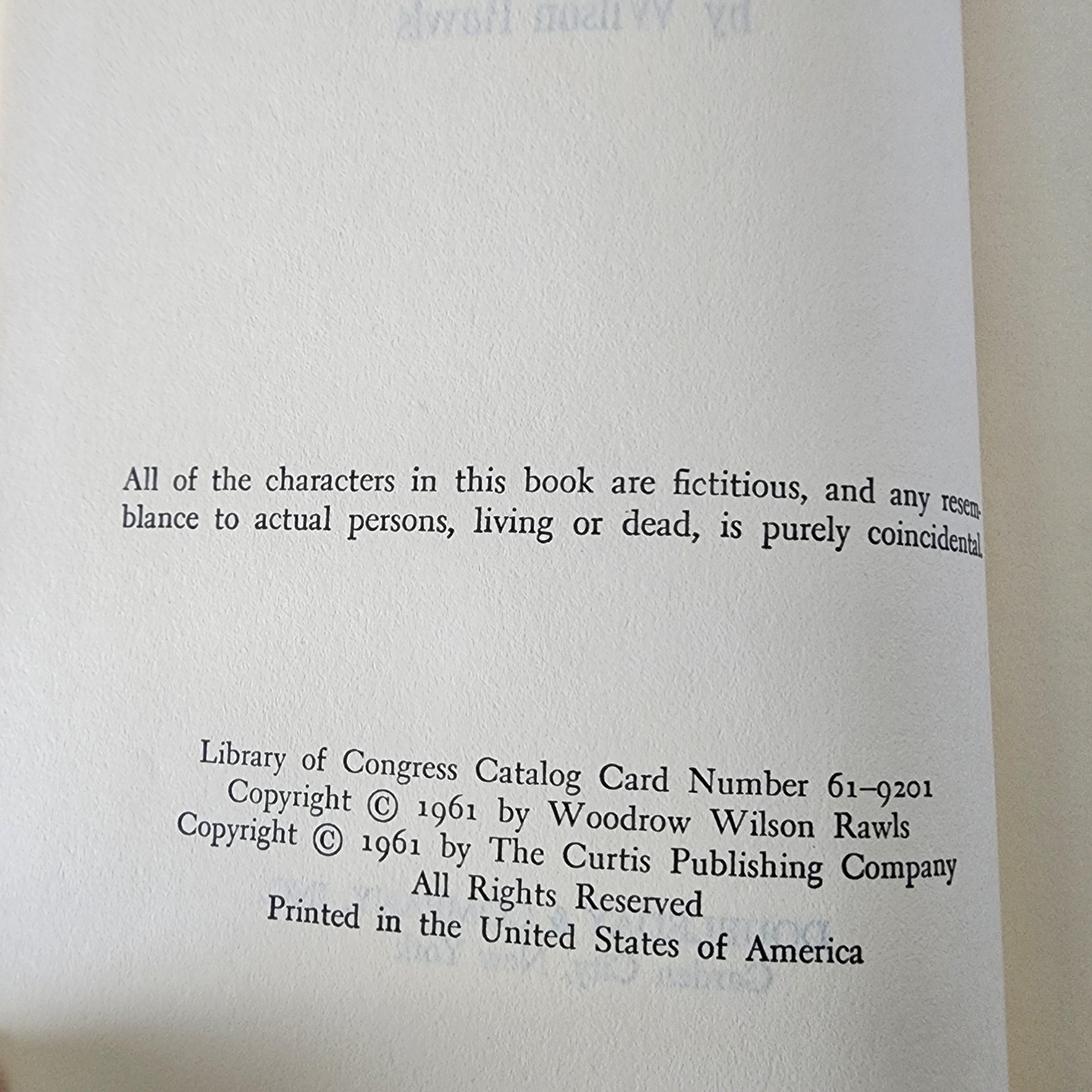 Where The Red Fern Grows - The story of two dogs and a boy by Wilson Rawls. This is a signed hard cover with dust jacket copyrighted in 1961. 212 pages.