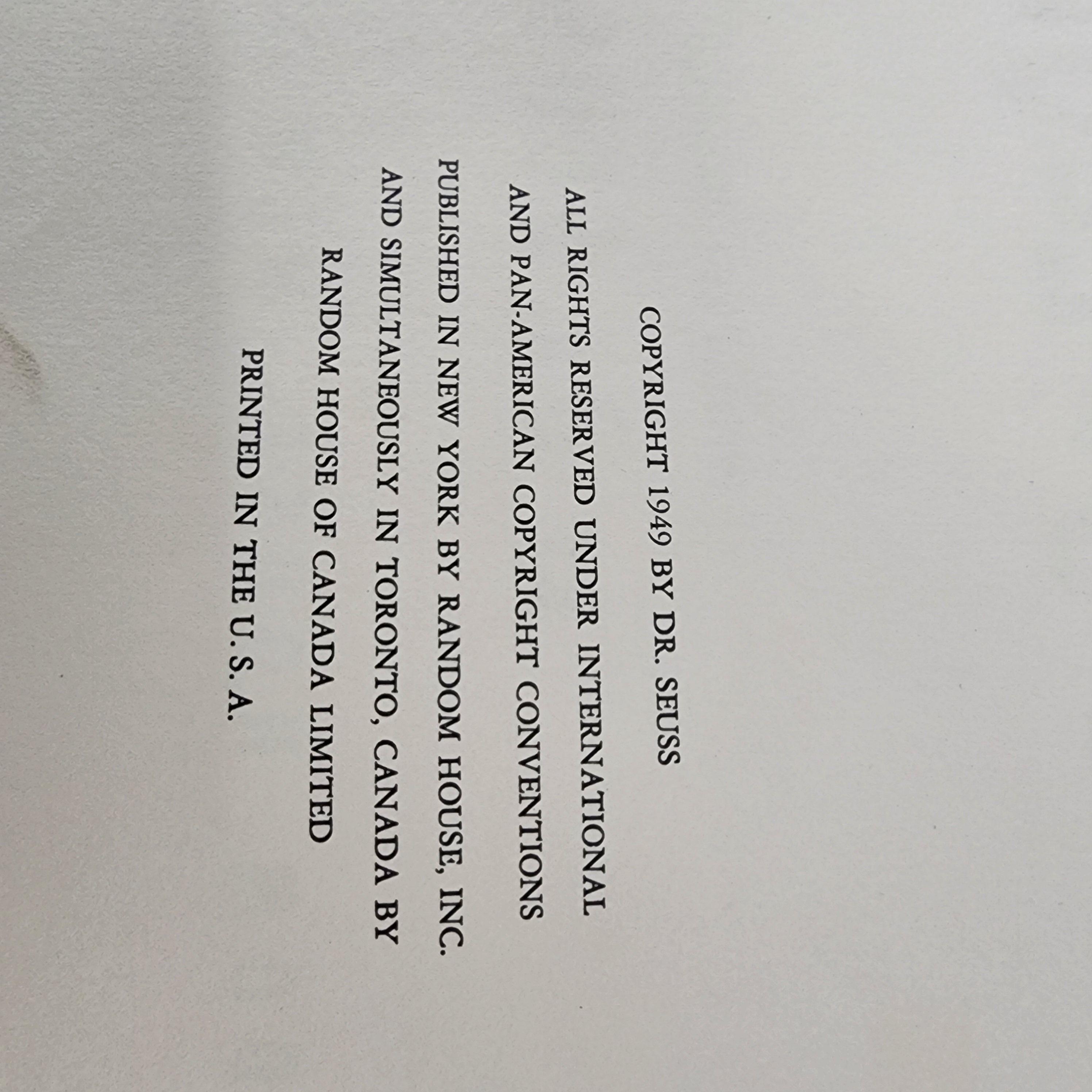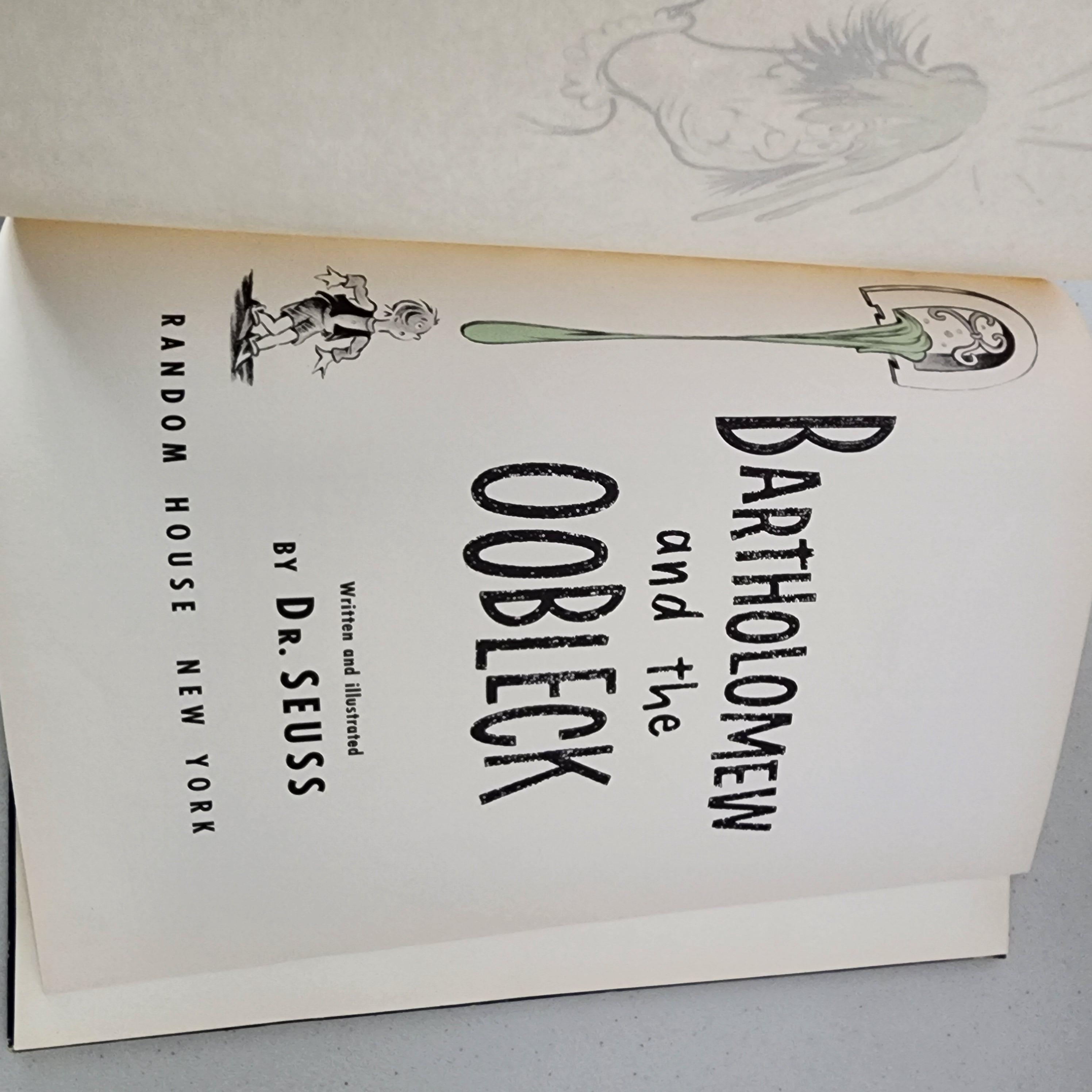 Batholomew And The Oobleck book by Dr. Seuss. This is a 1949 1st edition. Published by Random House and printed in the U.S.A.
