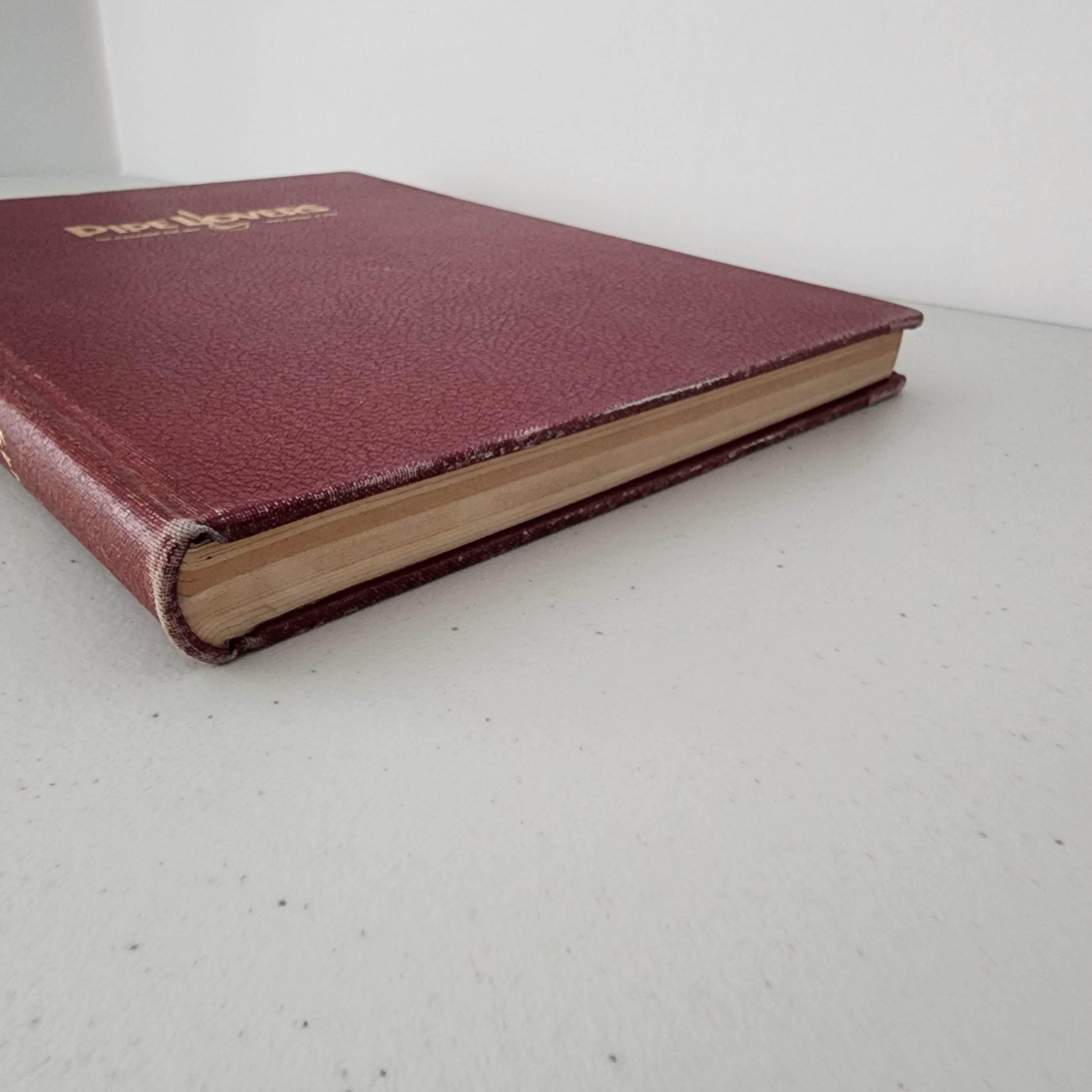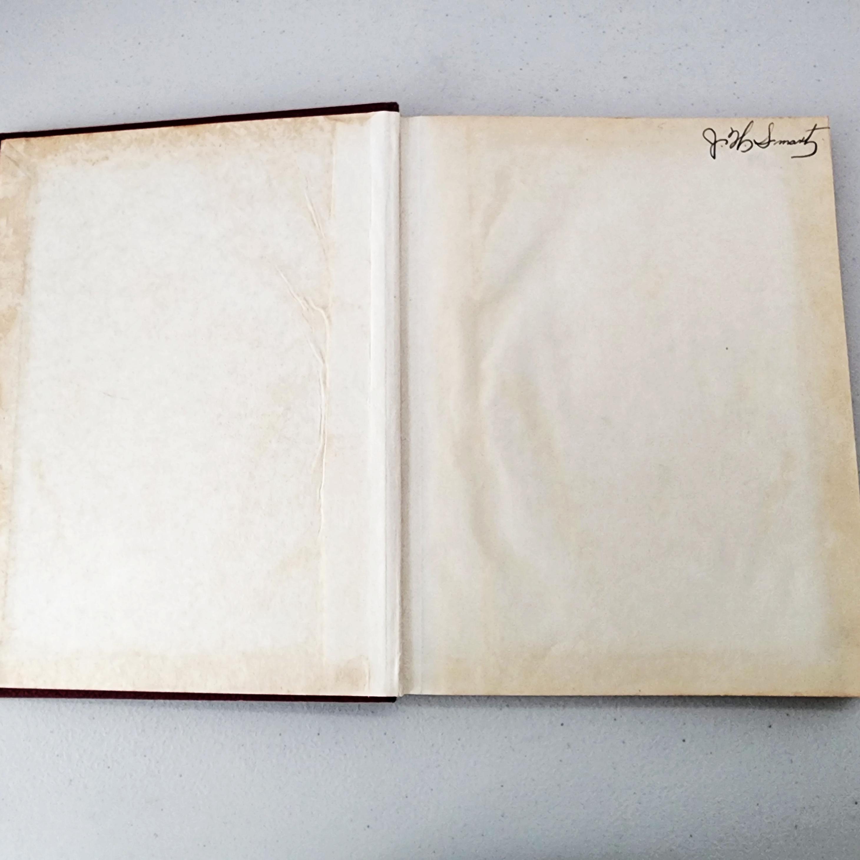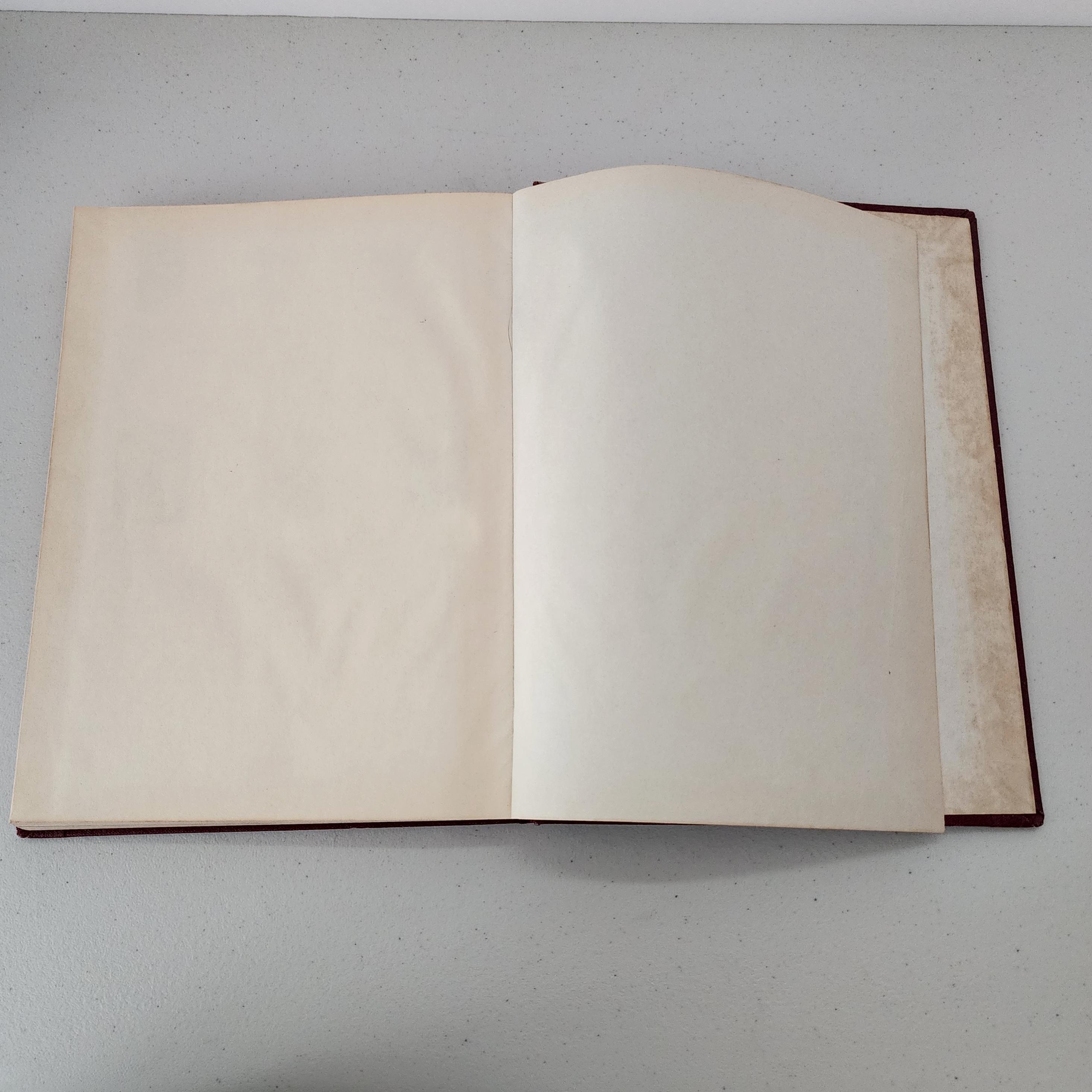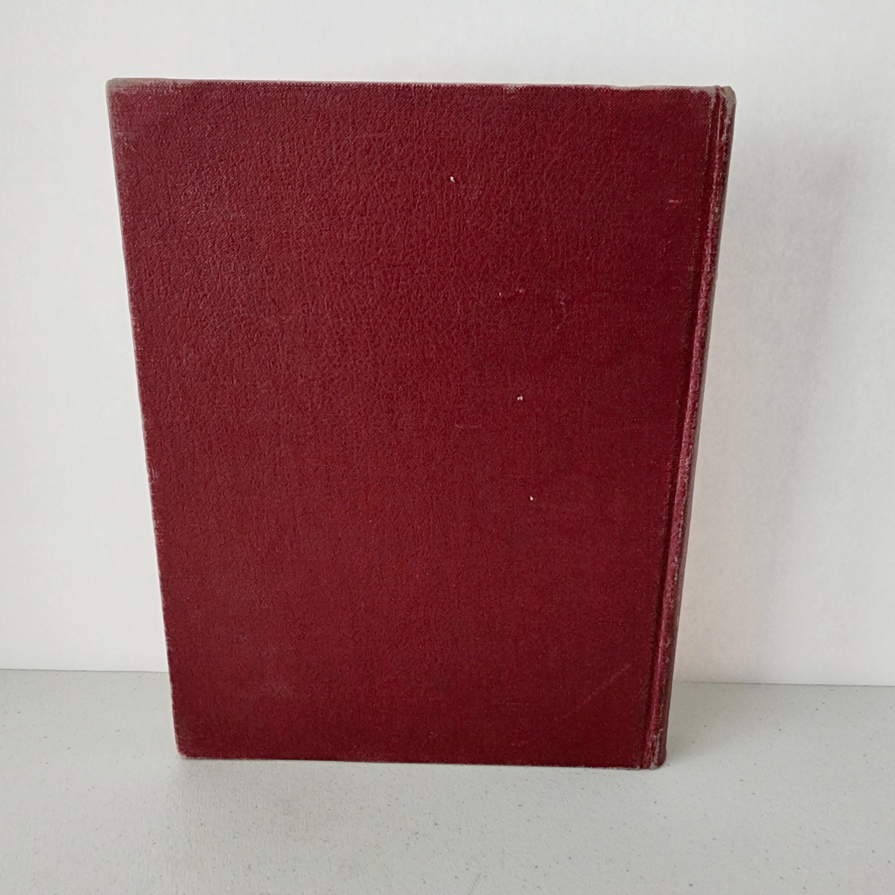 Condition: Cover has obvious wear to the edges and other marks. Inside both the front and back covers and nearby pages have evidence of moisture and discoloration, with some light moisture warping on the subsequent pages near the front and back of the book.