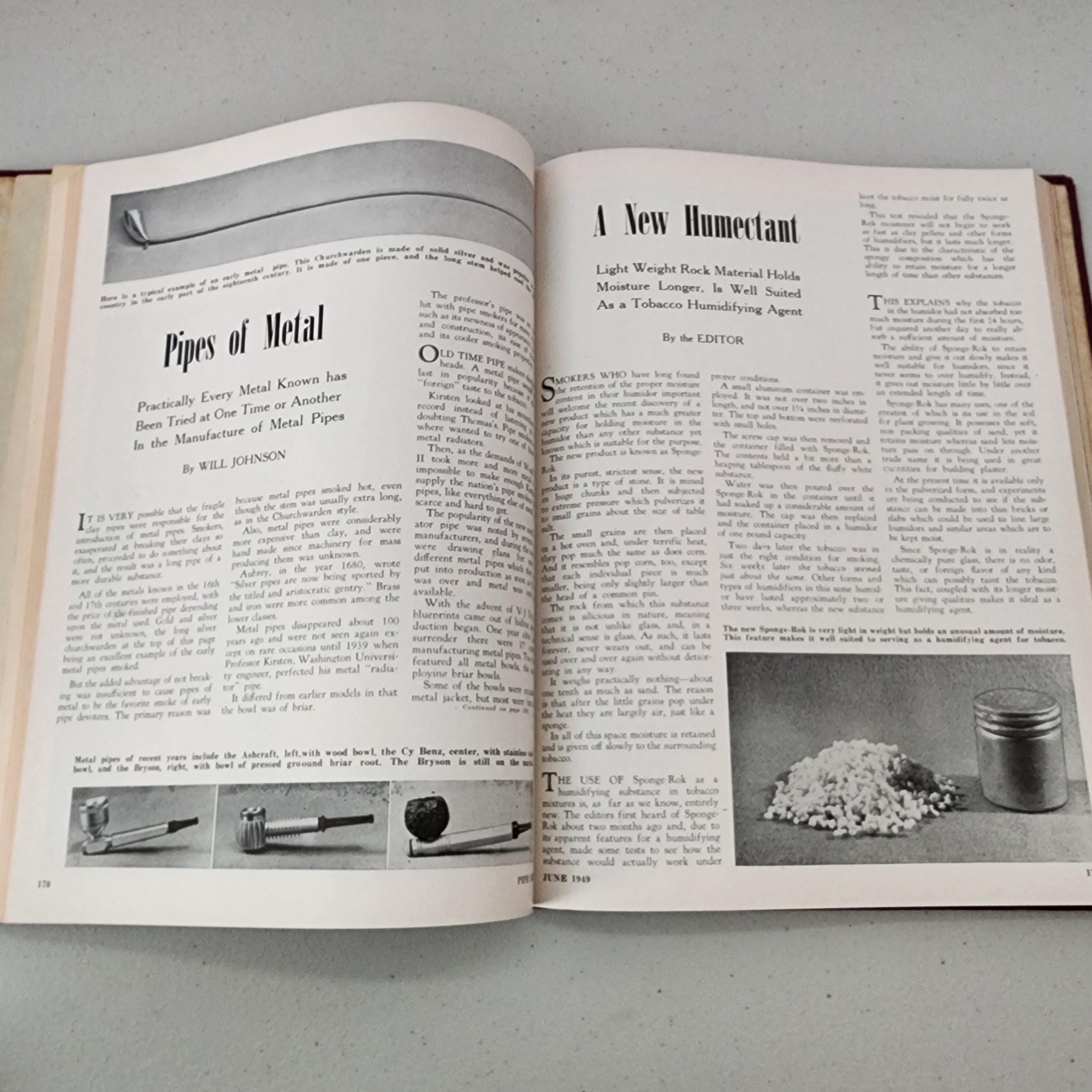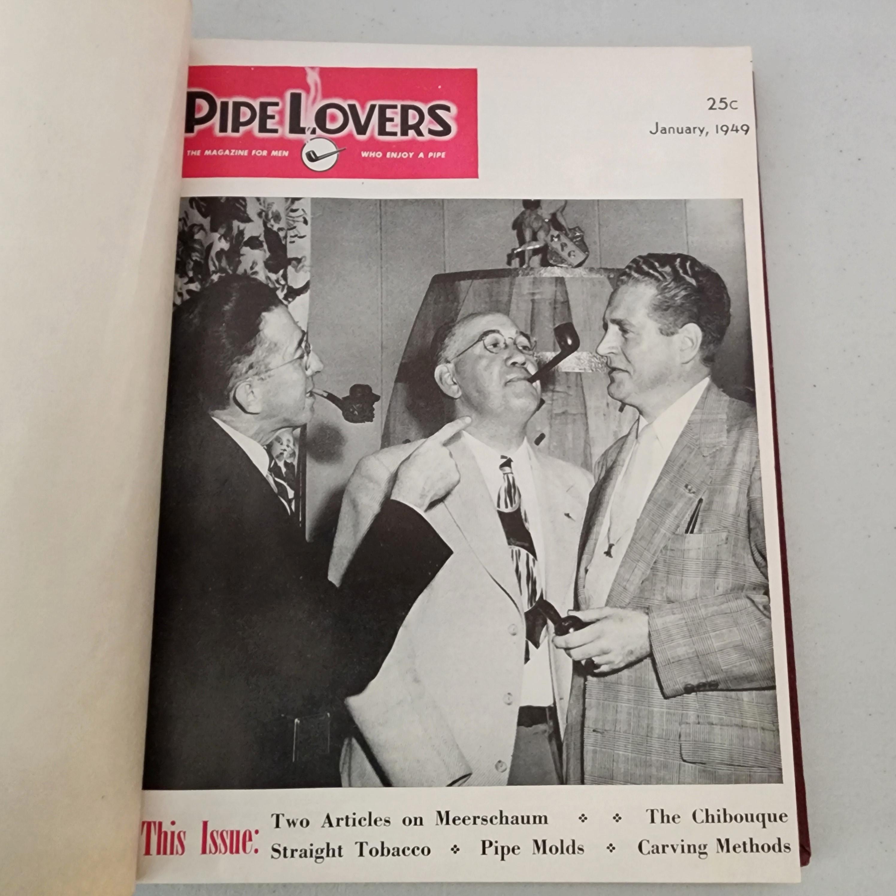 This is a hard cover bound volume of all 12 monthly issues from 1949 of Pipe Lovers - The Magazine For Men Who Enjoy A Pipe. The spine also has the number 4, which I assume means this is the 4th year a bound volume was made.