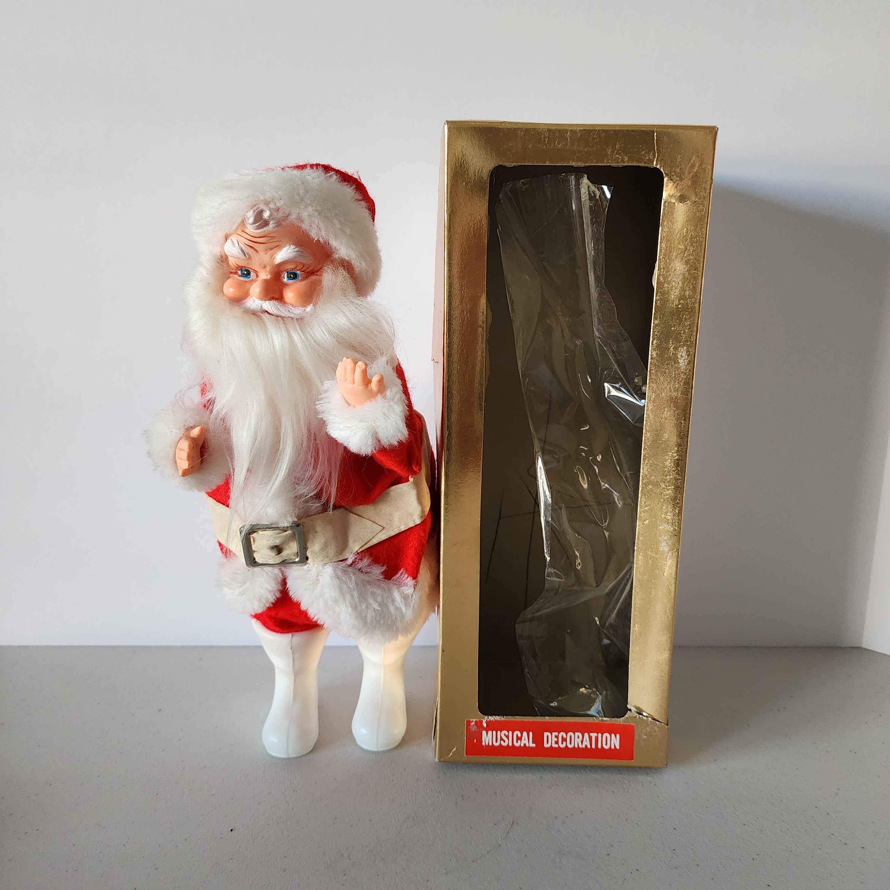 This is a vintage, 1960s or 1970s era, animated, musical wind up Santa Claus.  Comes in original box. Made in Japan.  No maker mark that I could see. When wound up he moves and plays Jingle Bells. I only wound him up a little for the video.