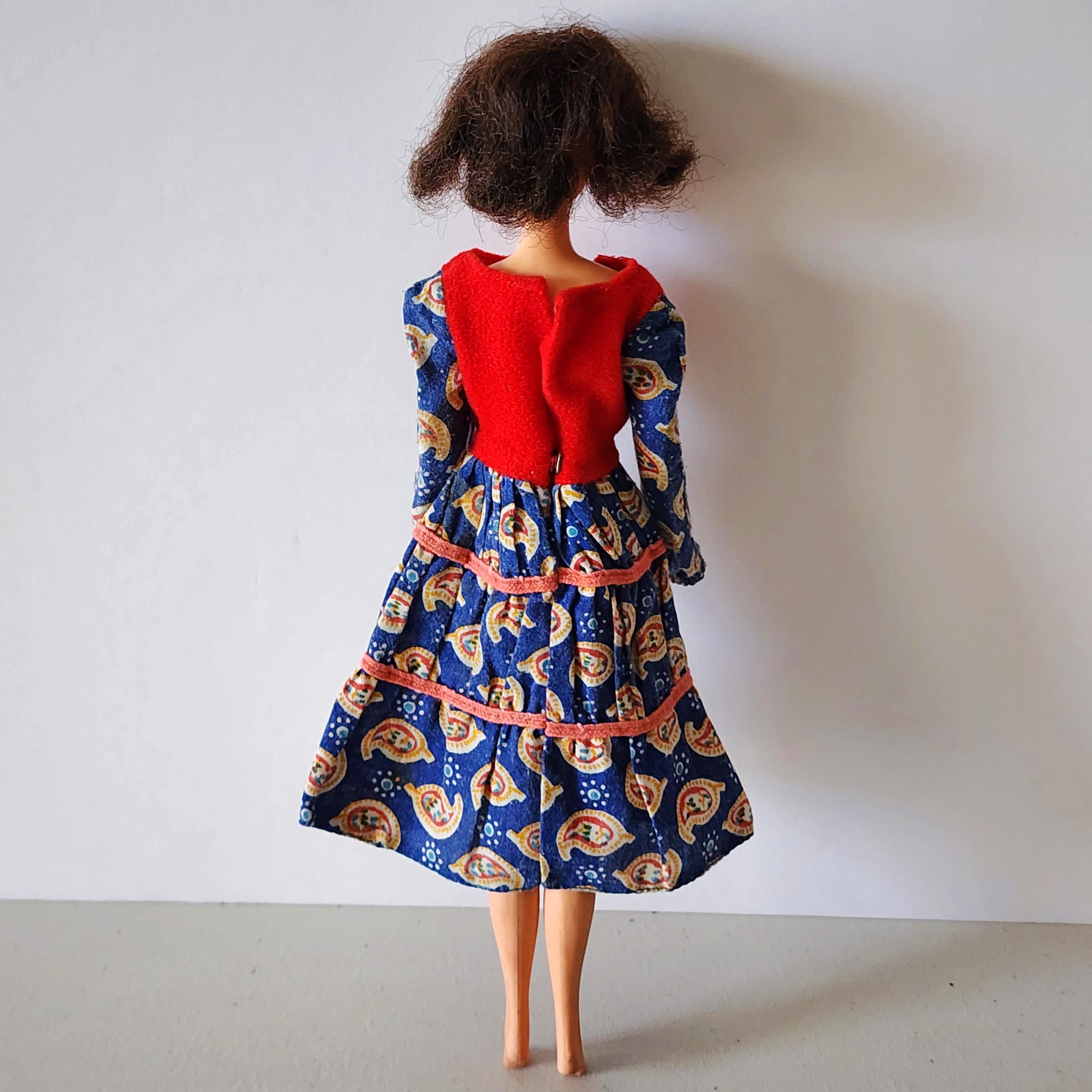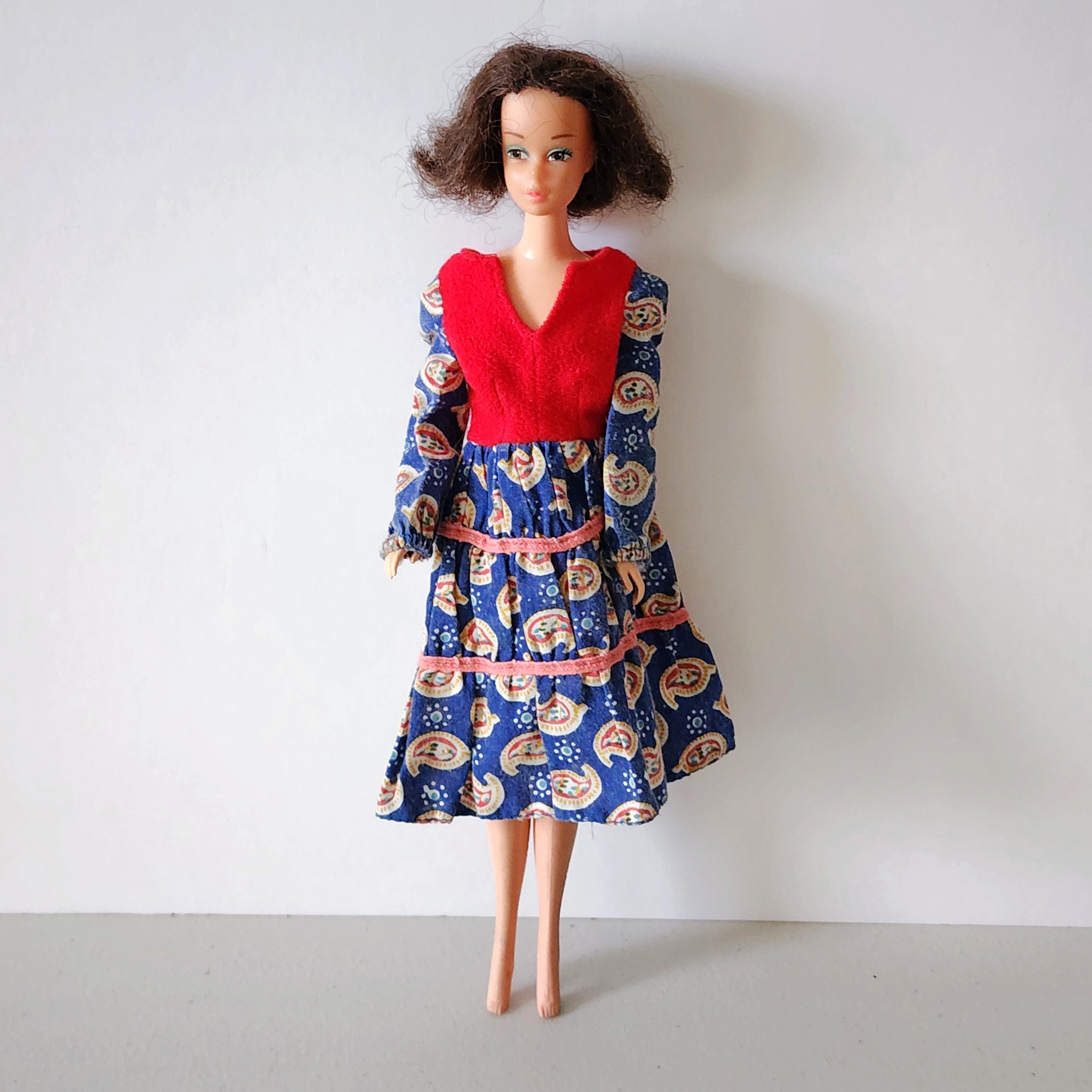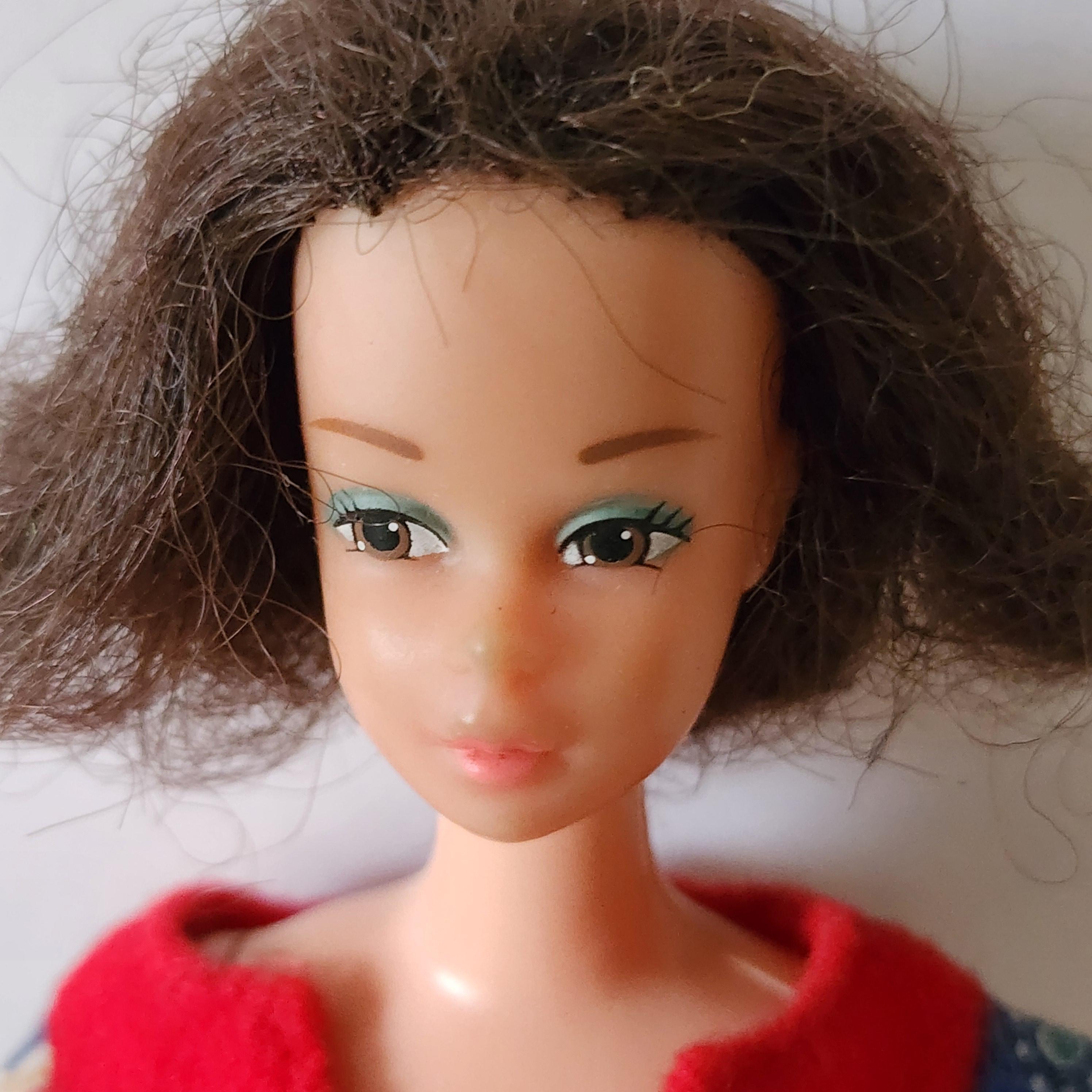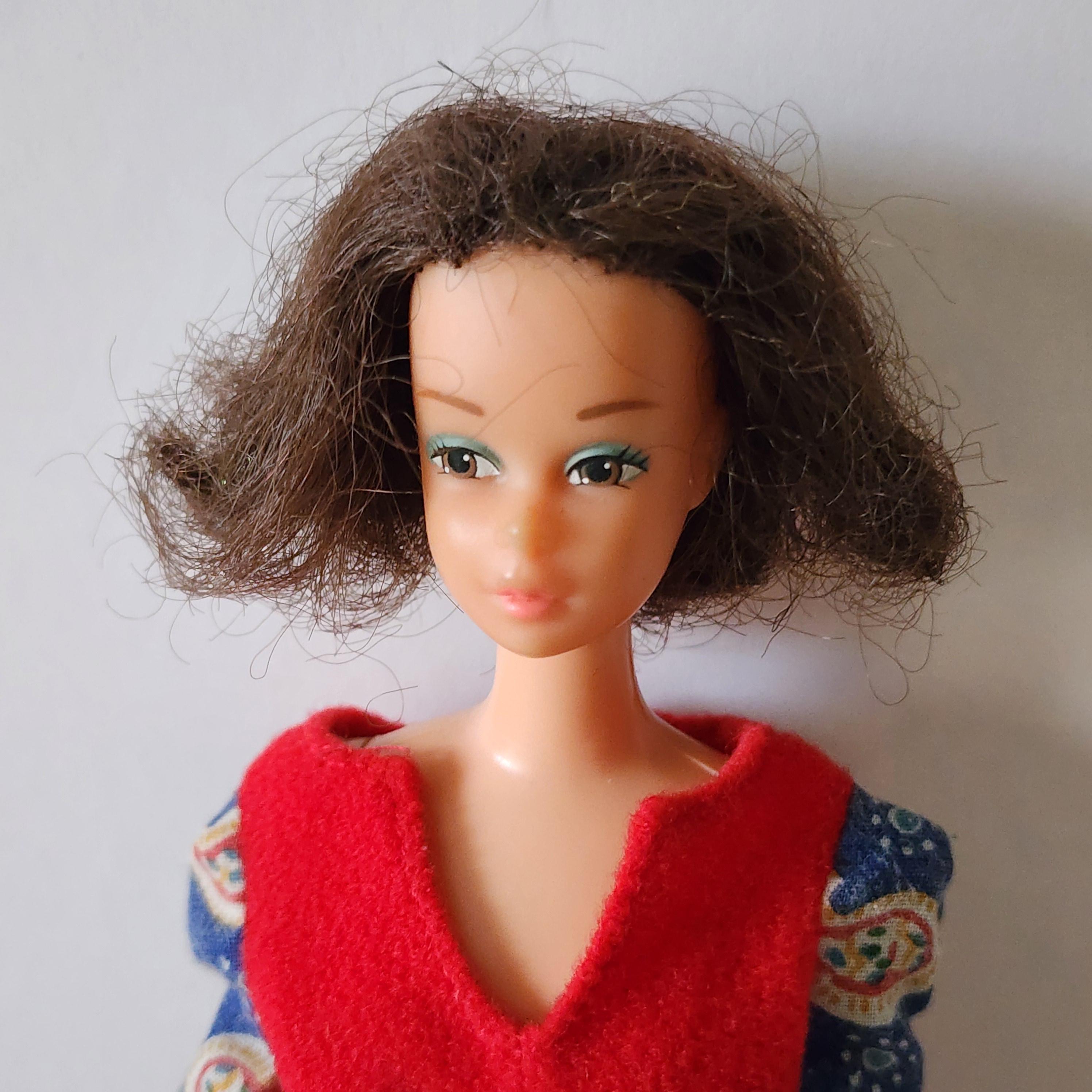 A vintage 1973 - 1974 Quick Curl Francie Barbie doll by Mattel. She is dressed in a genuine Barbie dress.