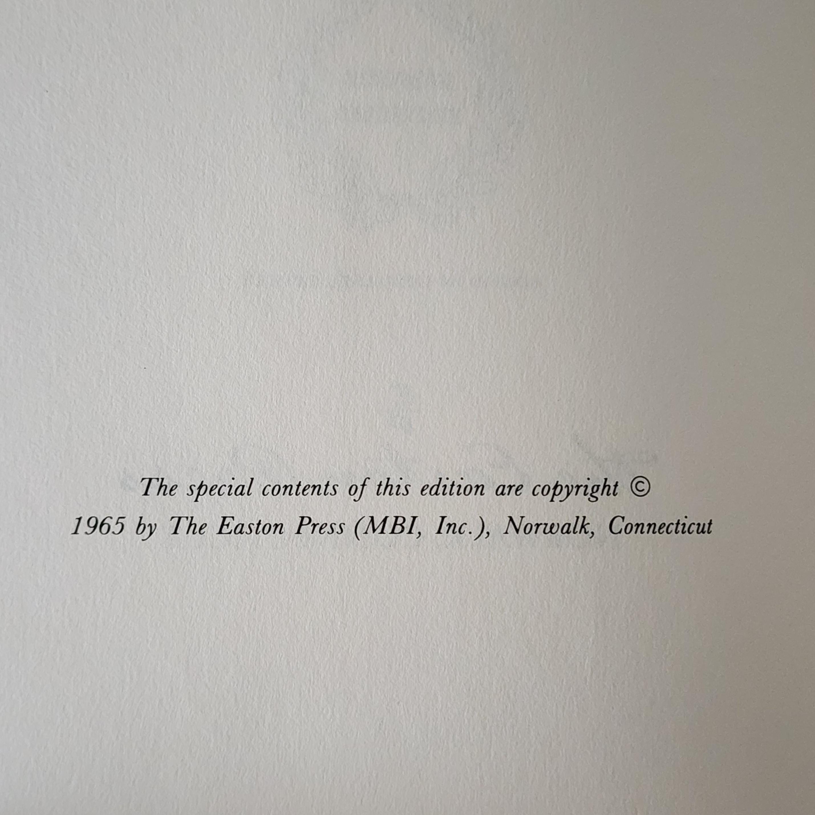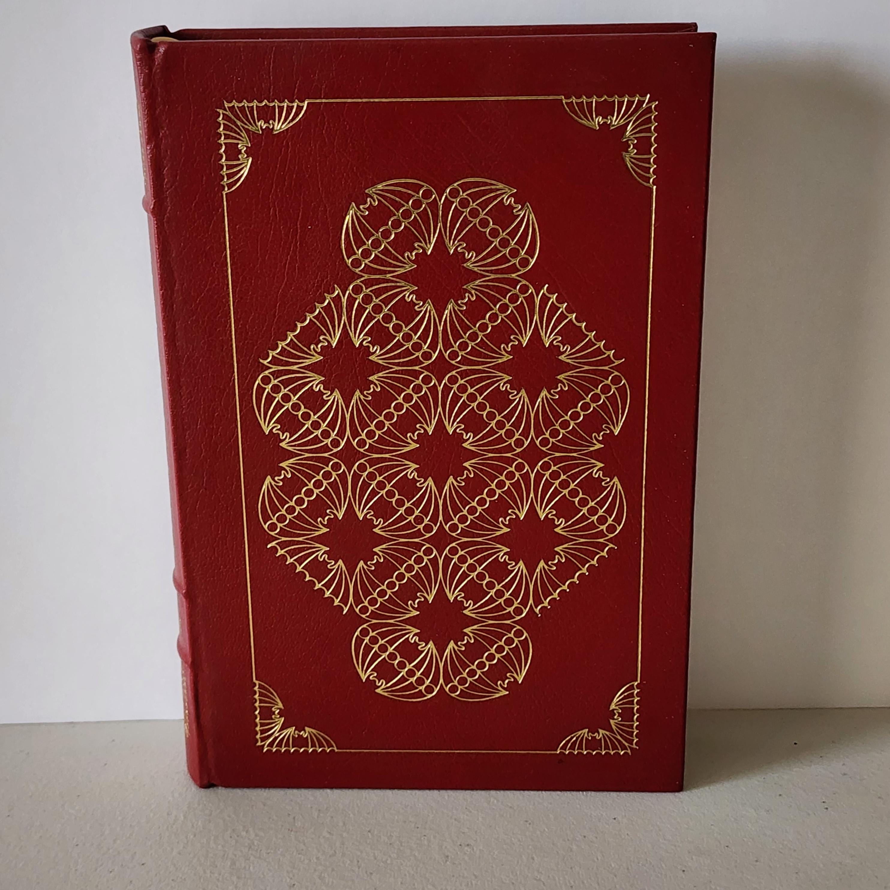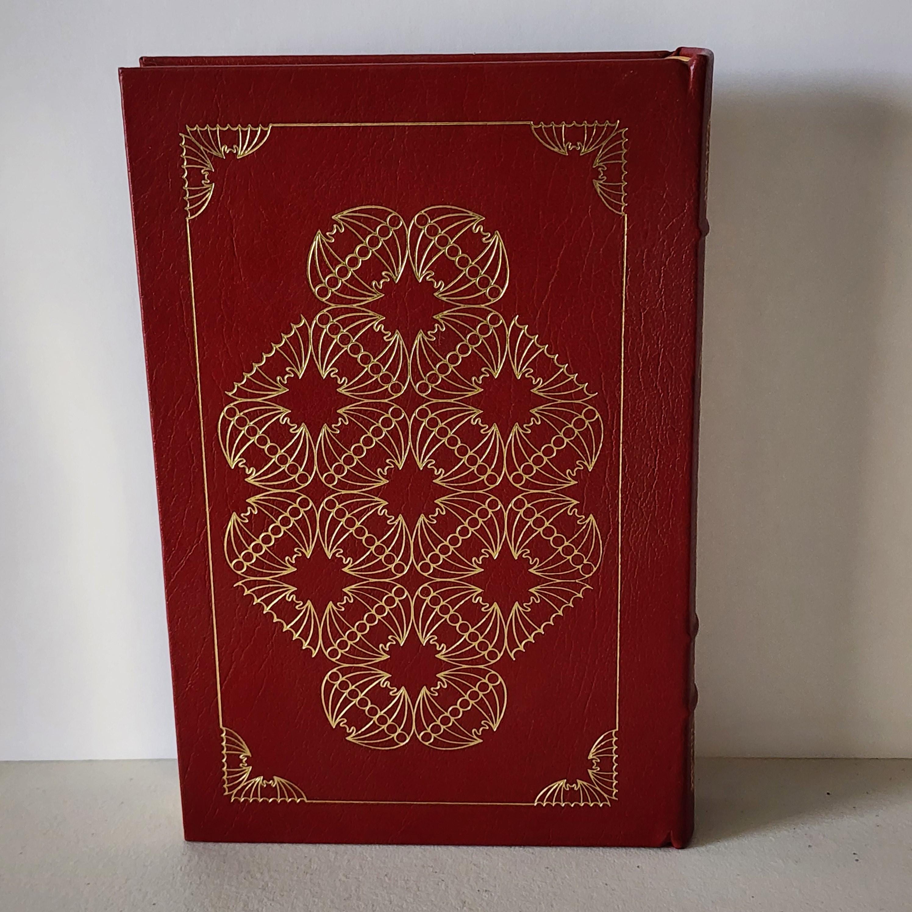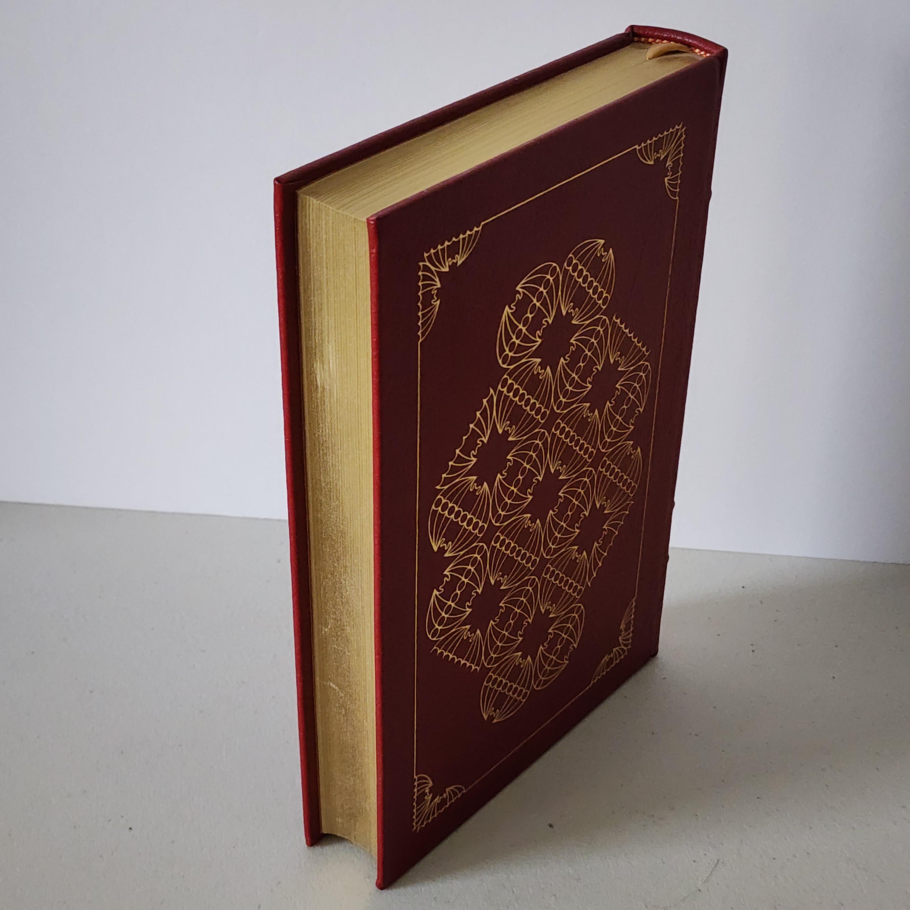 A leather bound hard cover Dracula by Bram Stoker. It is a collector's library Famous Editions book by Easton Press ©1965. Page edges are gold gilt and it comes with an attached ribbon bookmark.