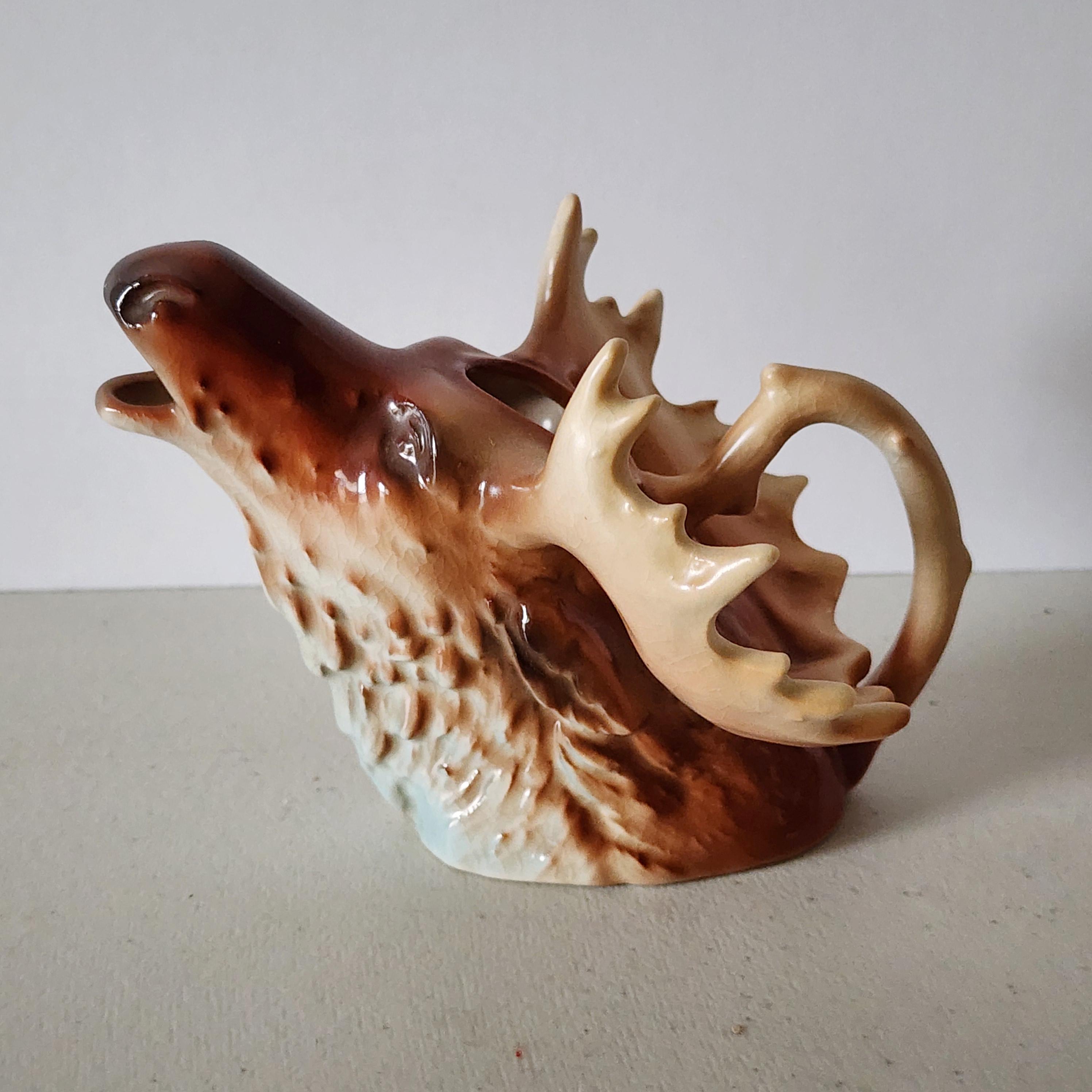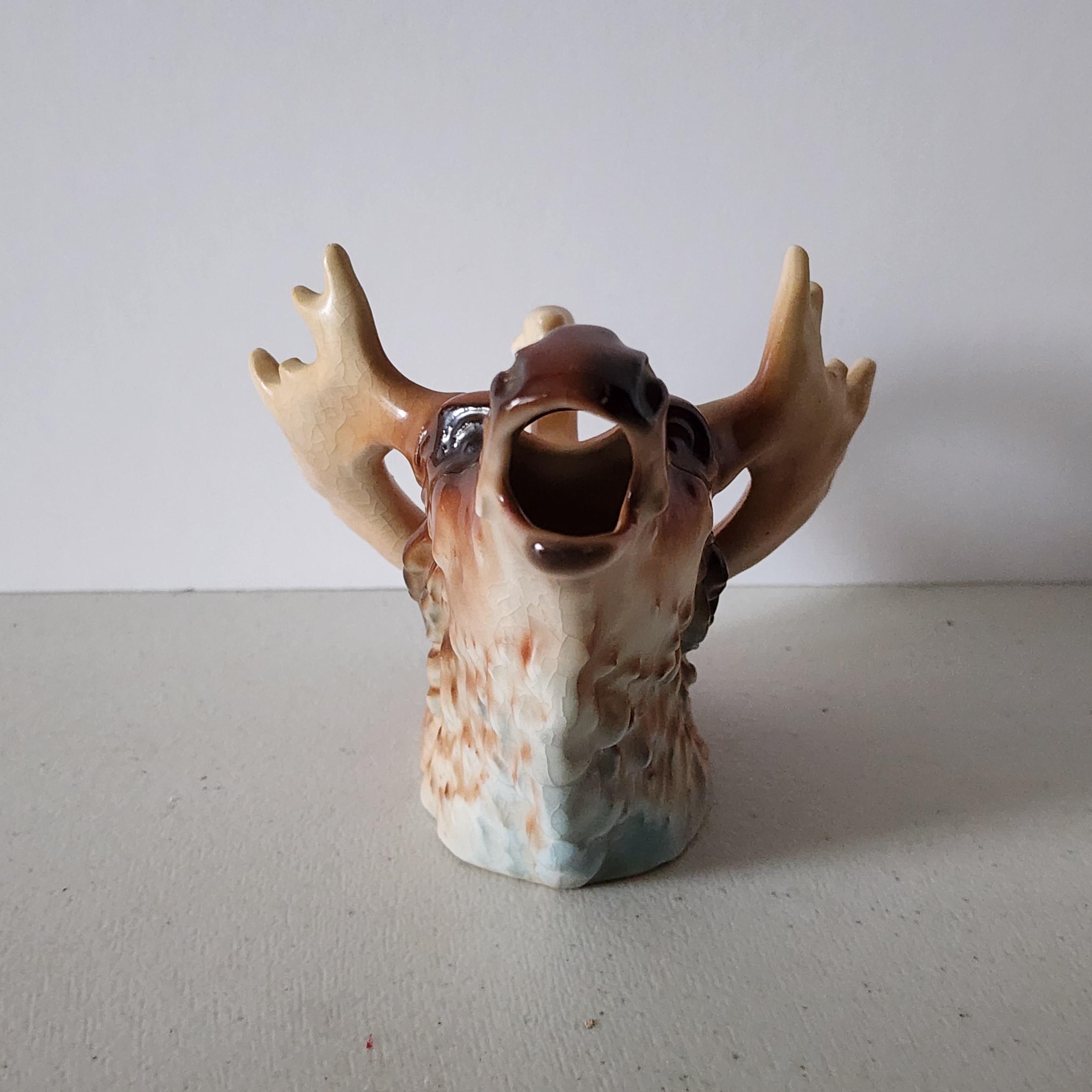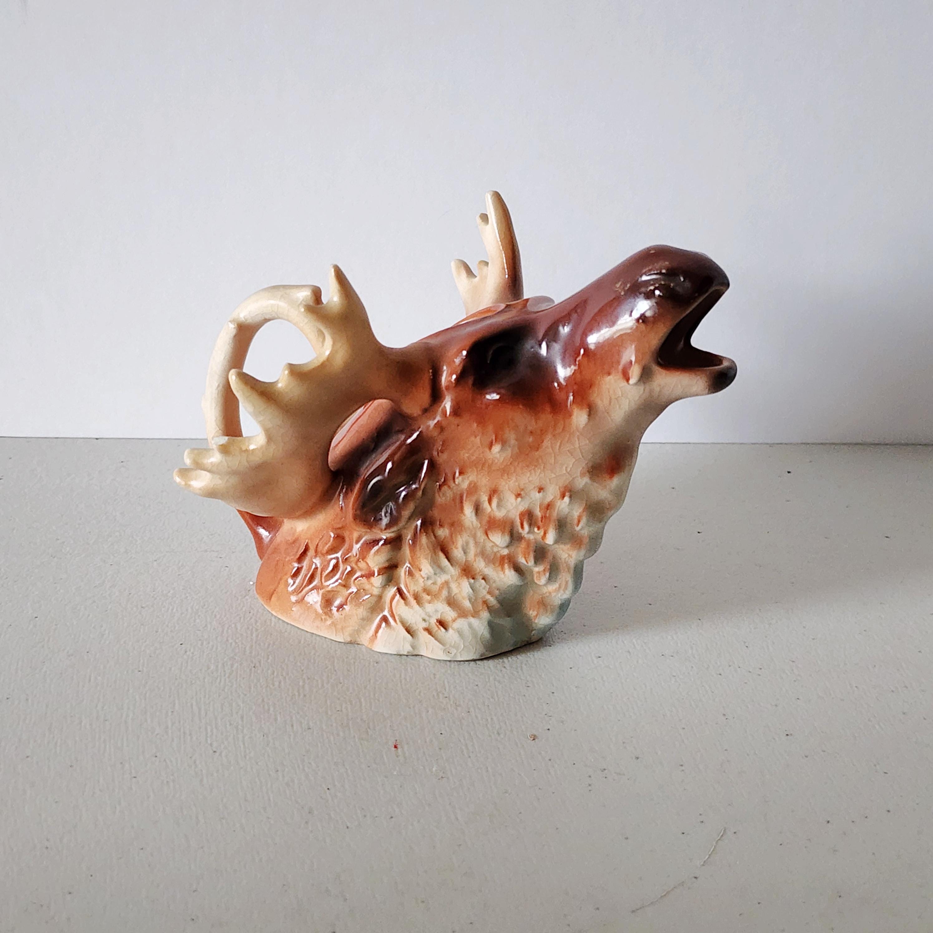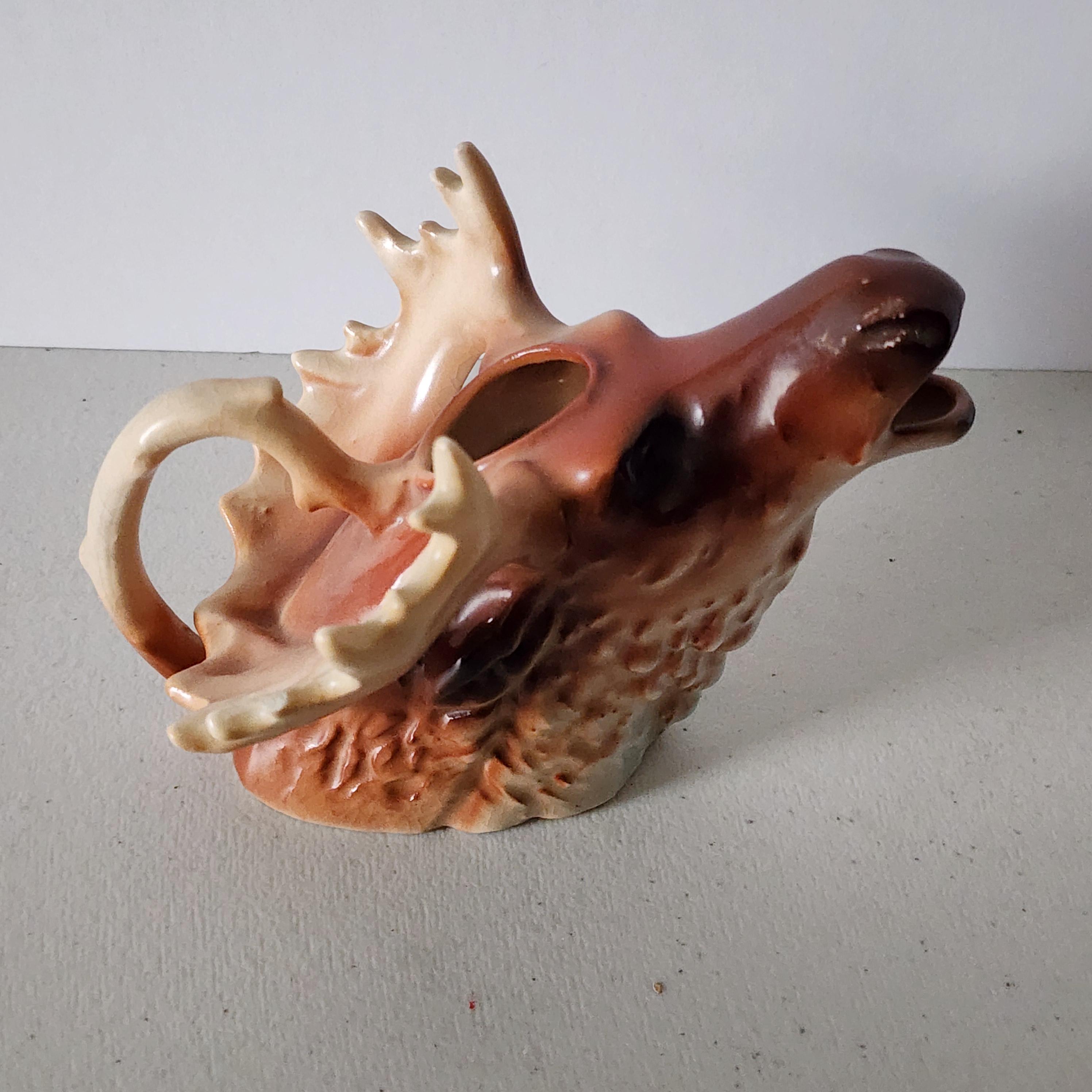 This is a vintage, unique full bust figural moose creamer pitcher. It is marked on the bottom: Samples Austria.