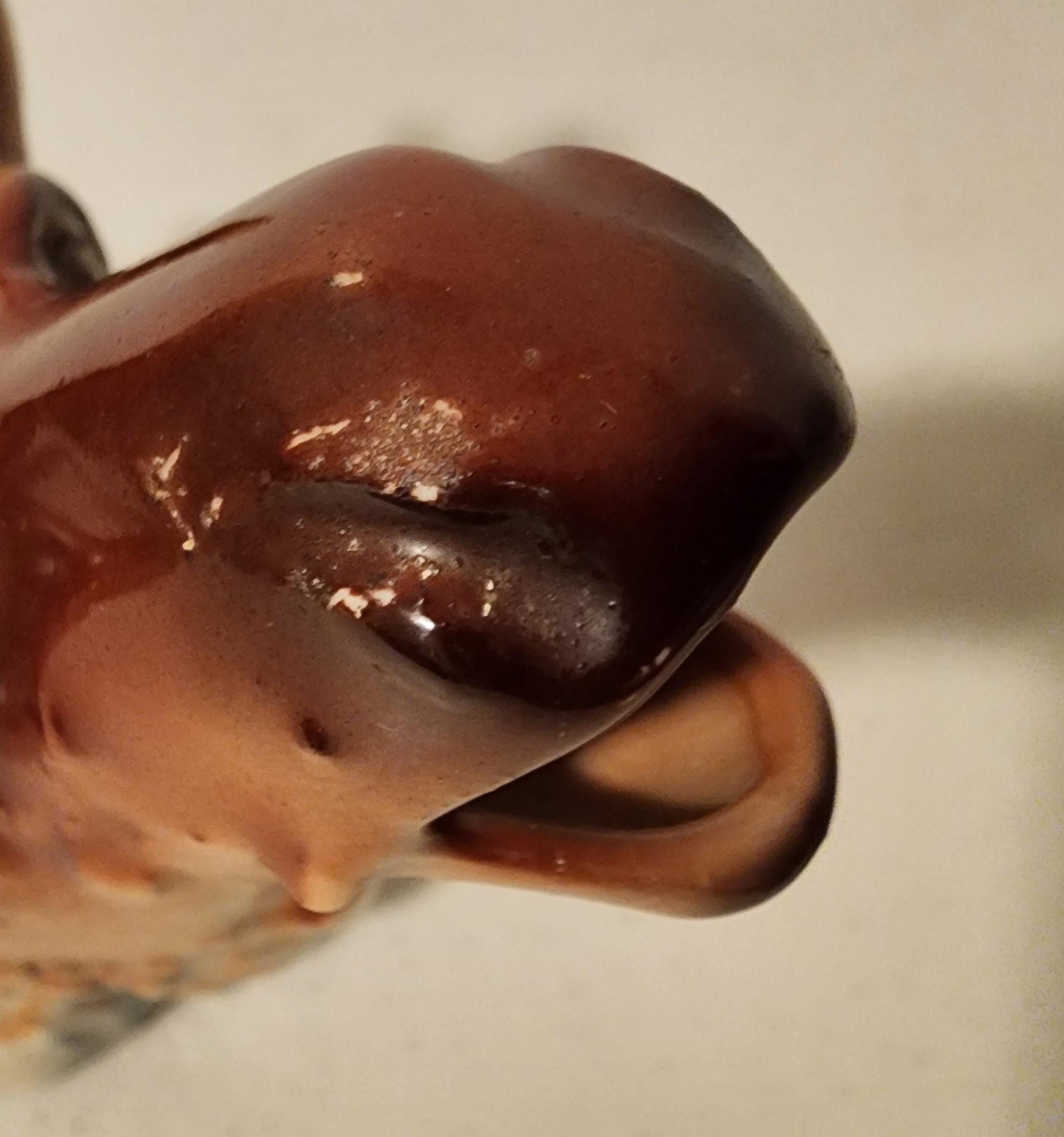 Condition: Crazing over most areas. Paint loss/rubs on nose. Chip on the tip of one antler point. Please see all photos.