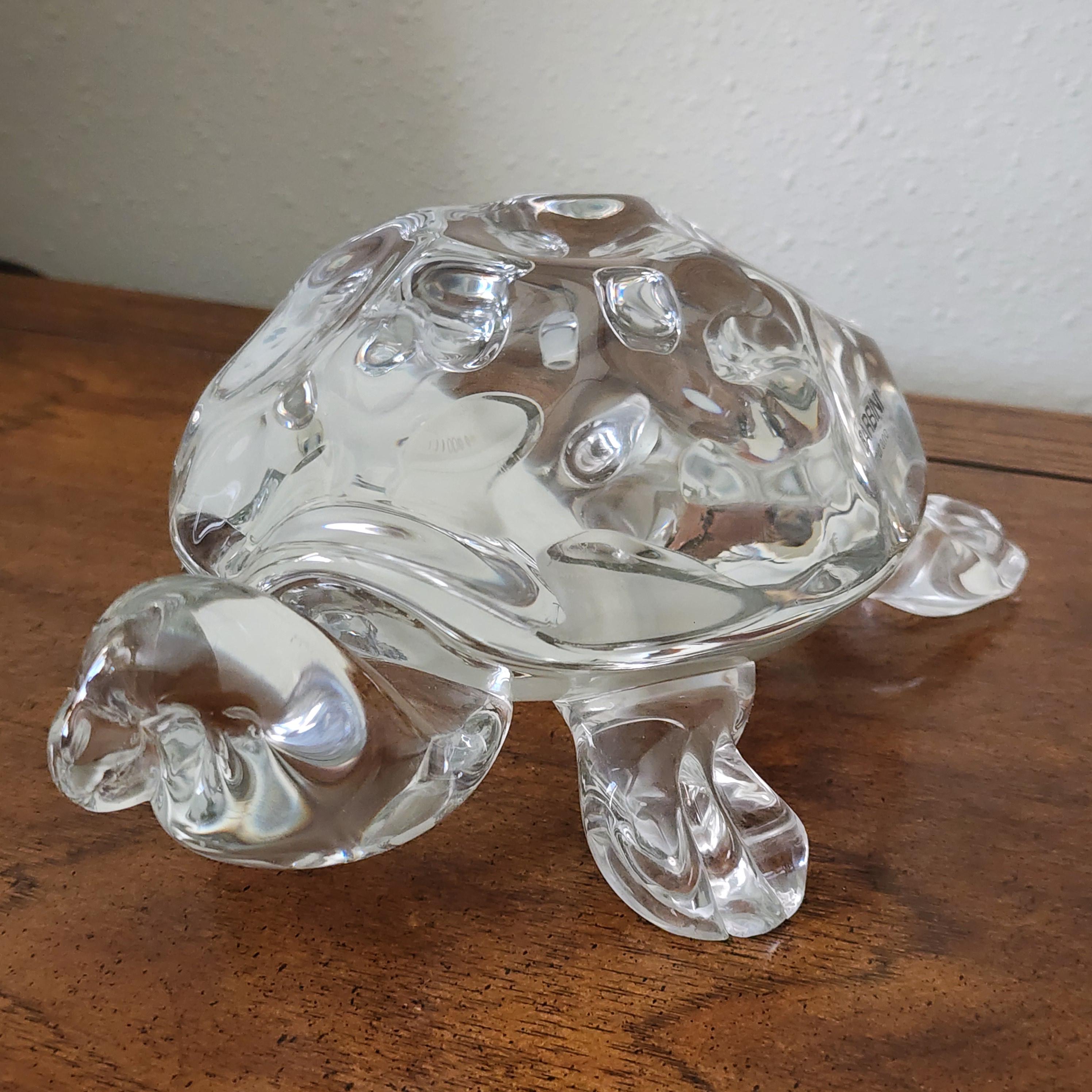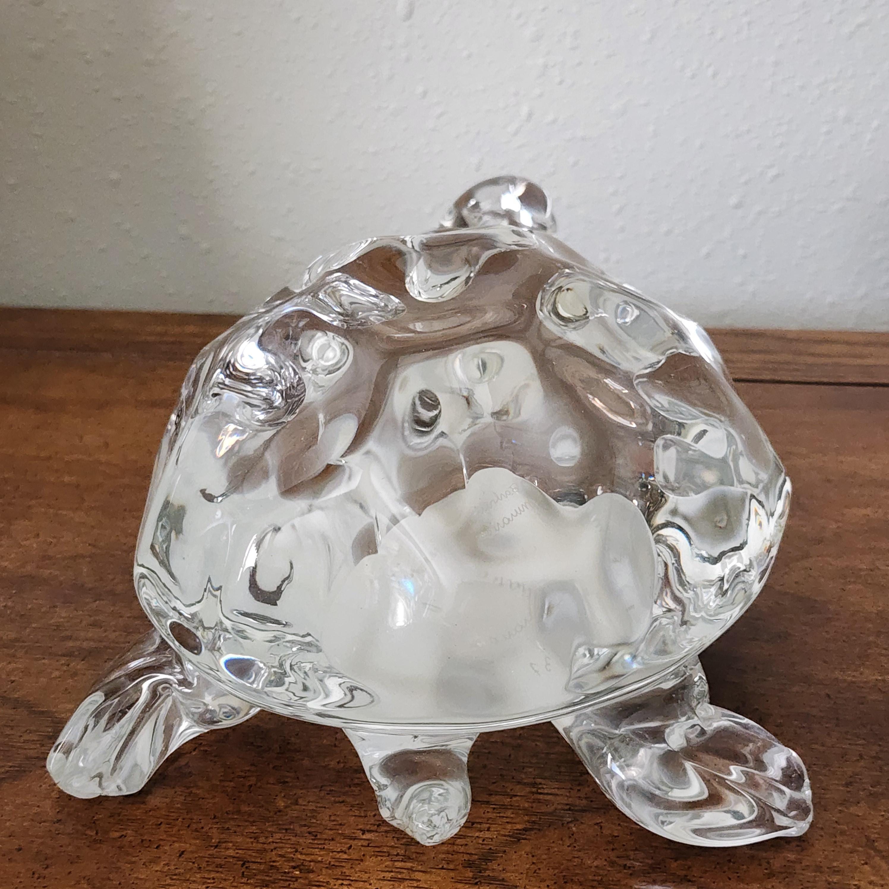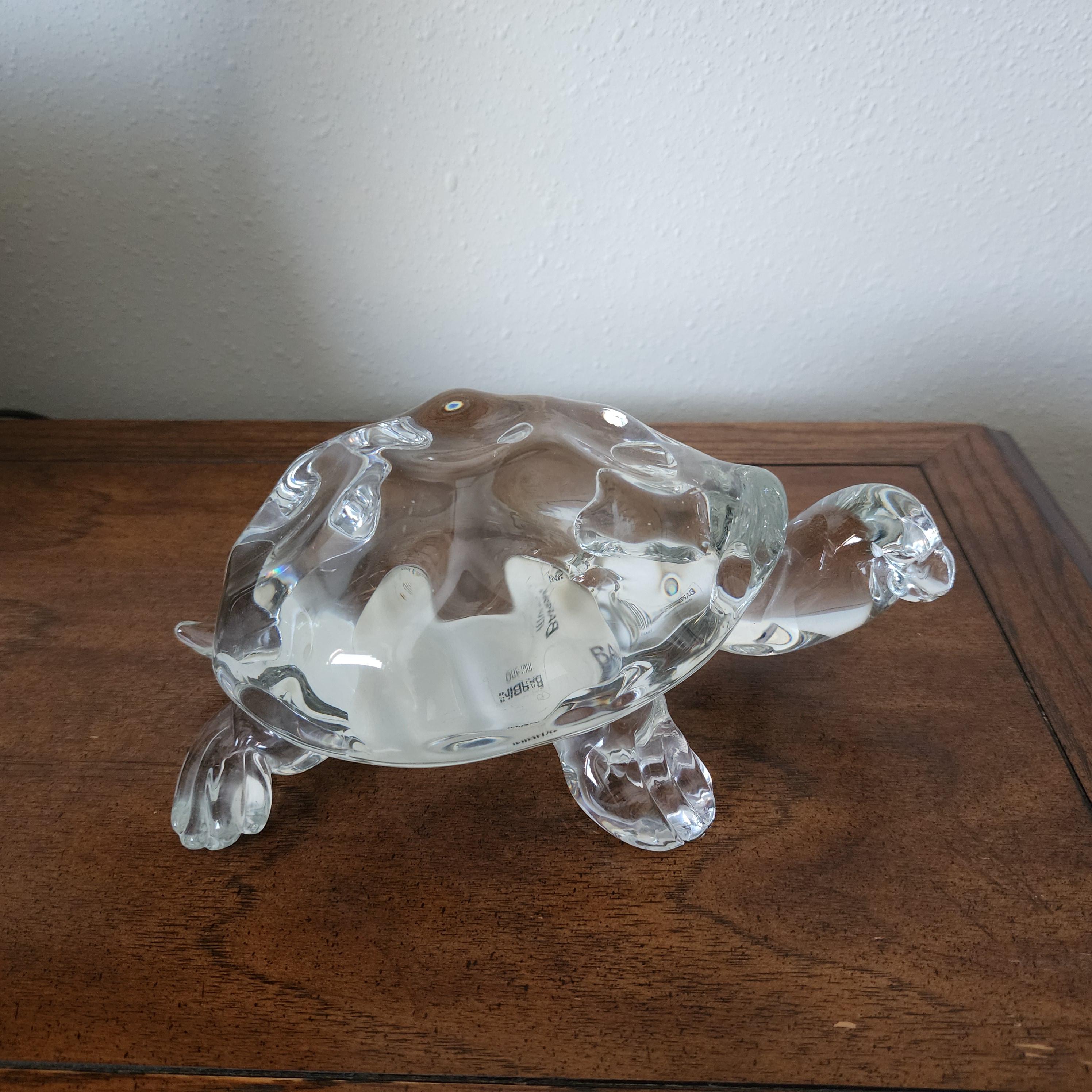 A beautiful clear glass turtle with Barbini Murano sticker on the side. The bottom is also marked the same, along with the number 37.