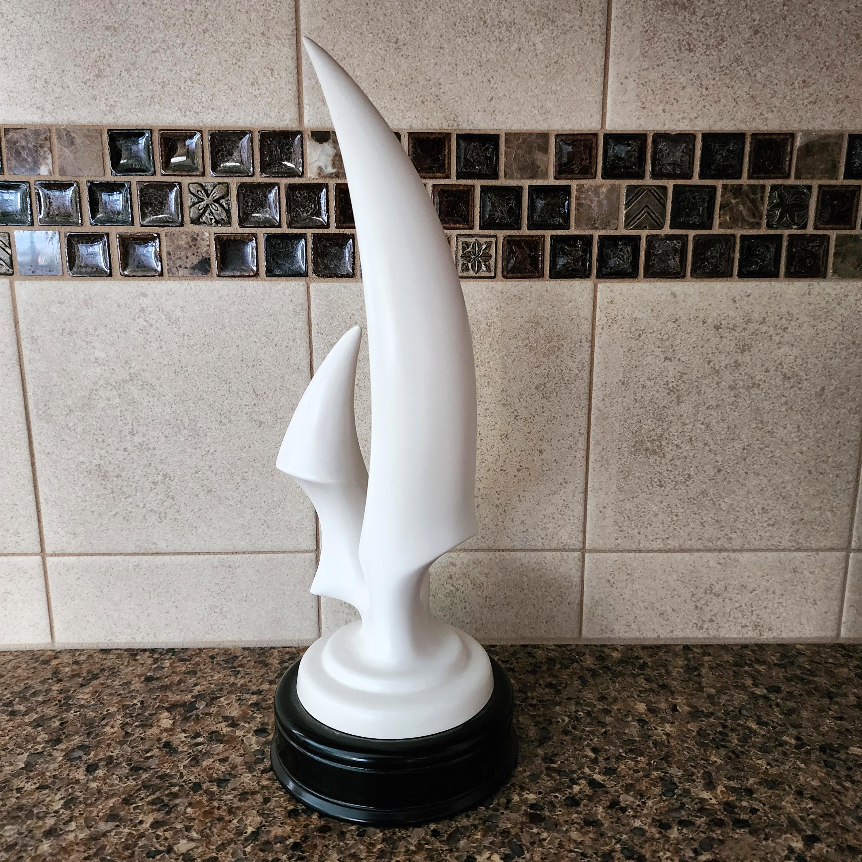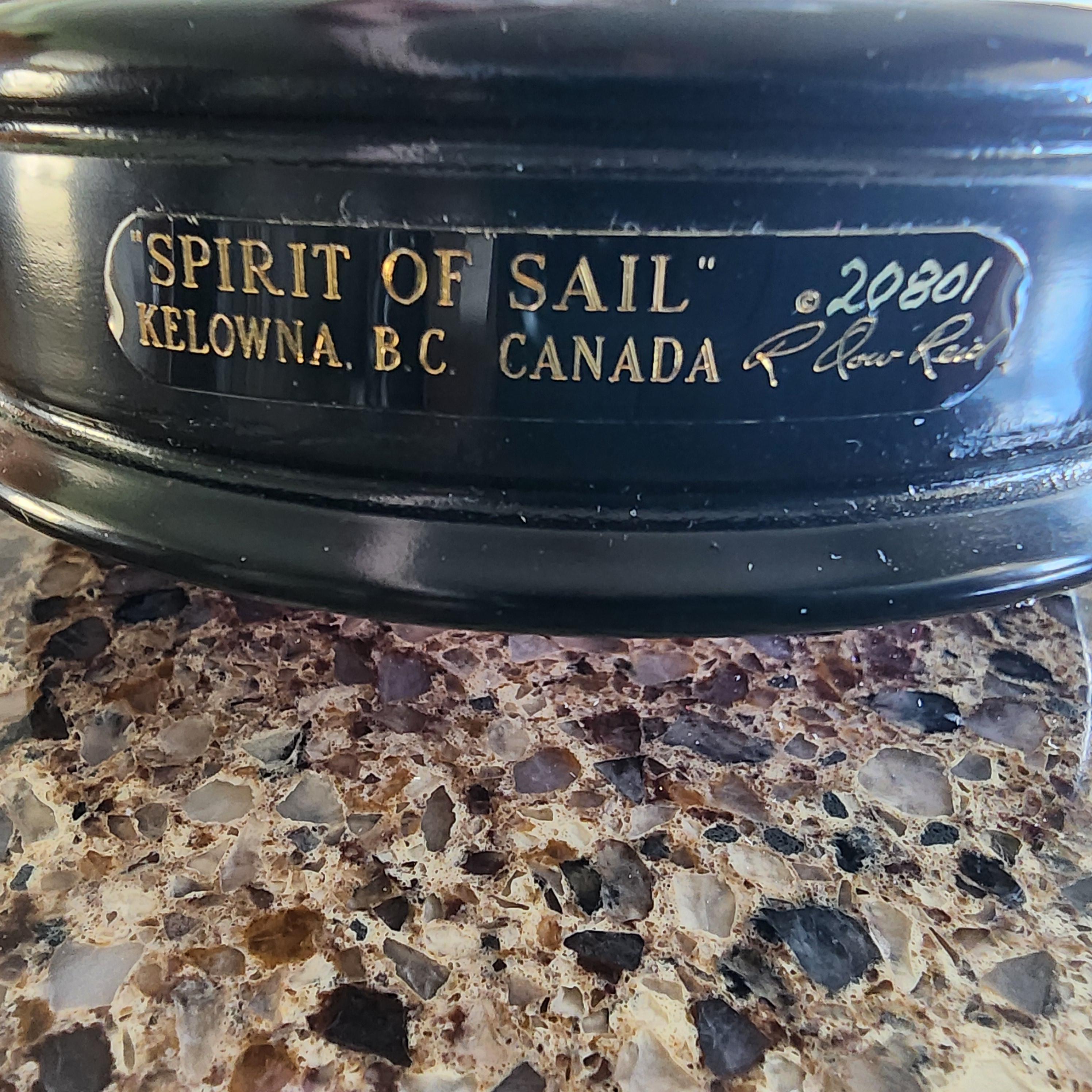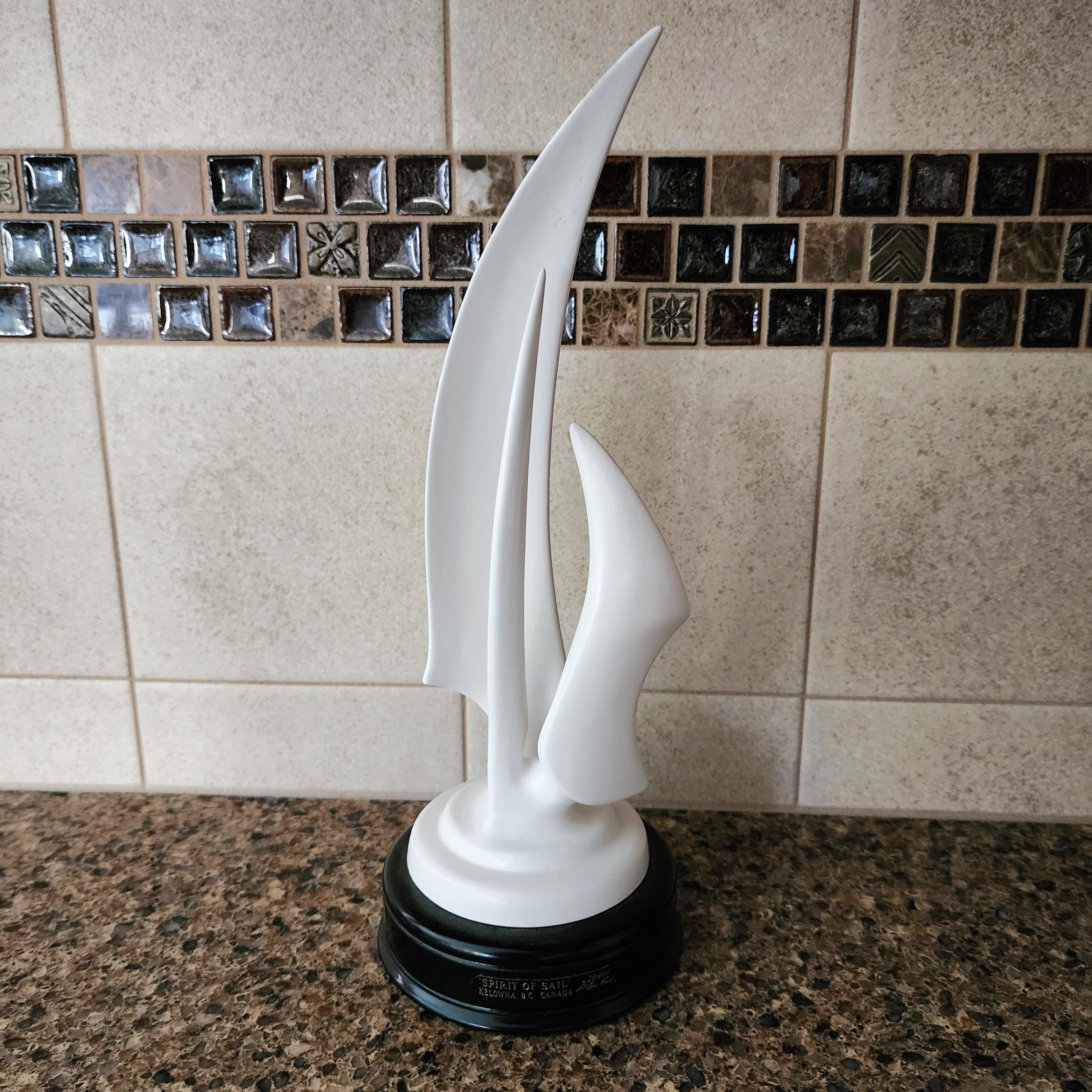 This is a vintage ceramic sculpture of the famous sculpture Spirit of Sail in Kelowna B.C. Canada by Robert Dow Reid. It is numbered as 20801 on the front plate.