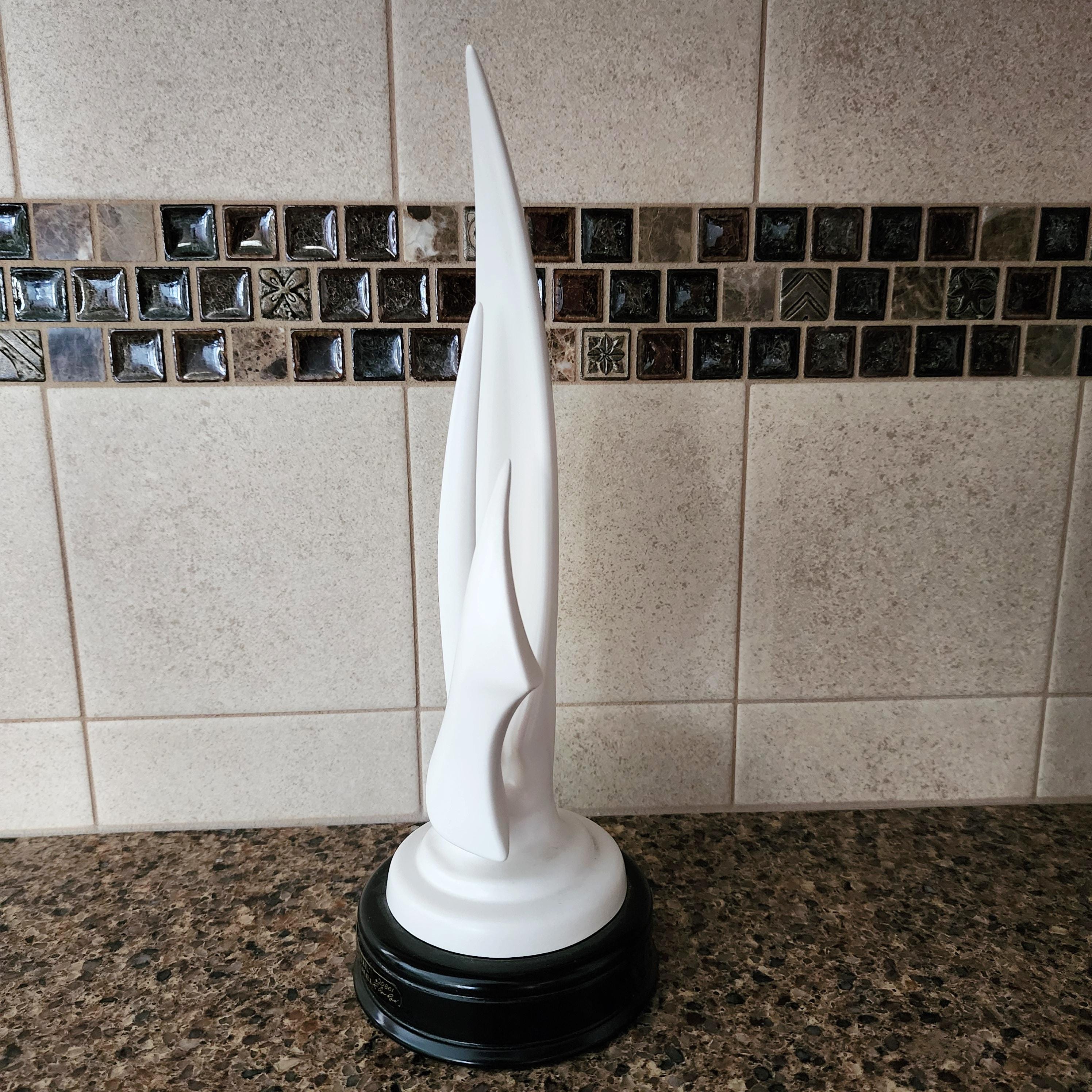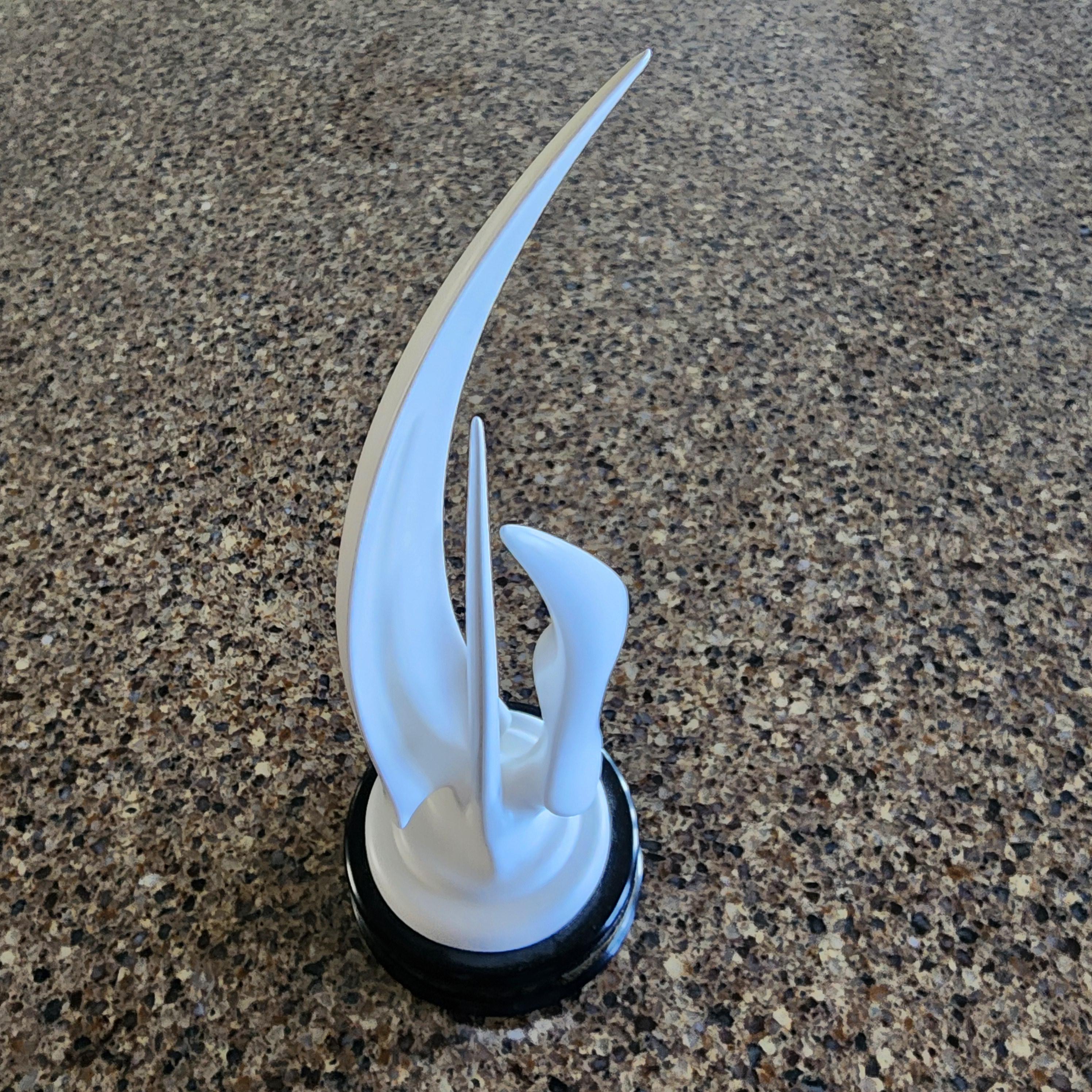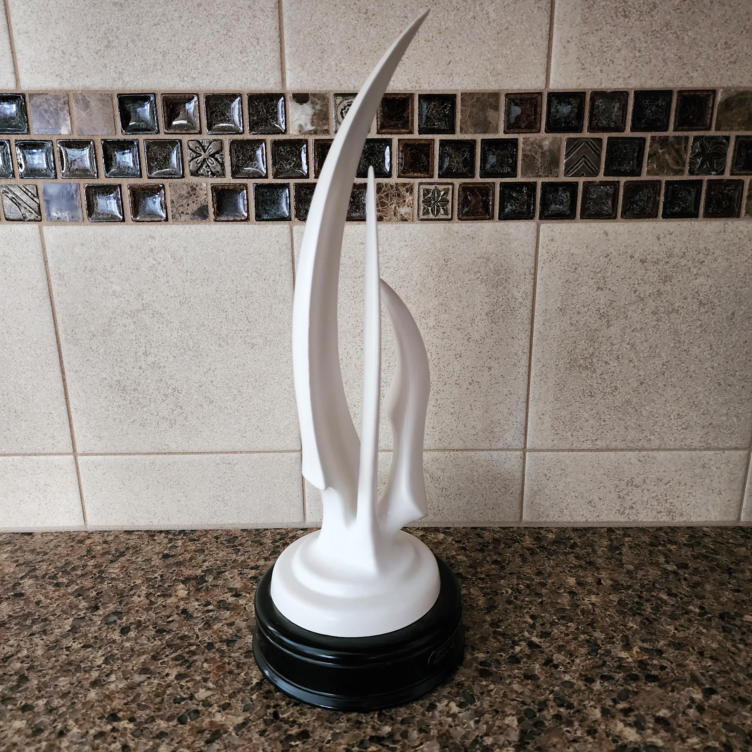 This is a vintage ceramic sculpture of the famous sculpture Spirit of Sail in Kelowna B.C. Canada by Robert Dow Reid. It is numbered as 20801 on the front plate.