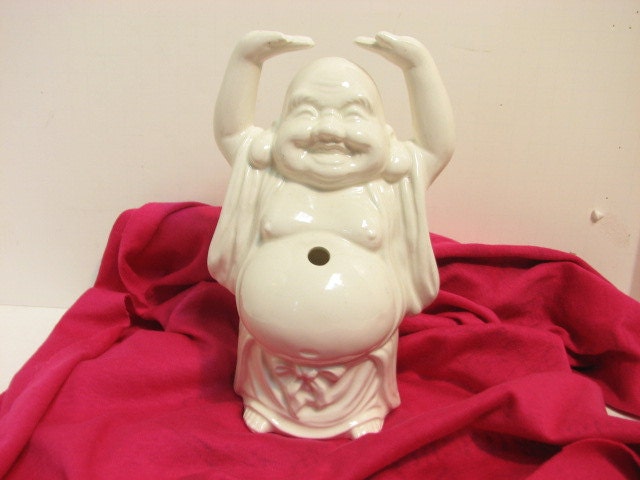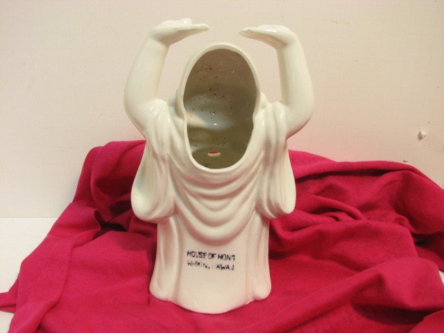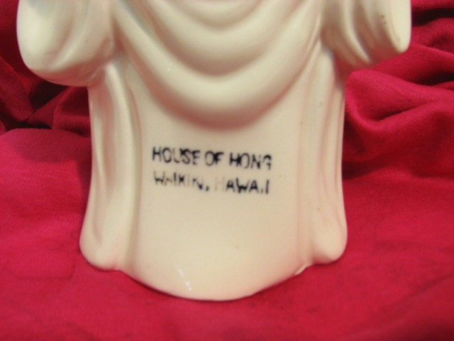 Vintage Buddha from the House of Hong in Waikiki Hawaii. It has an open back for holding Swizzle sticks or straws or whatever. The figure measures about 8.0" tall. Marked Japan on the bottom with a "OMC Japan" sticker.