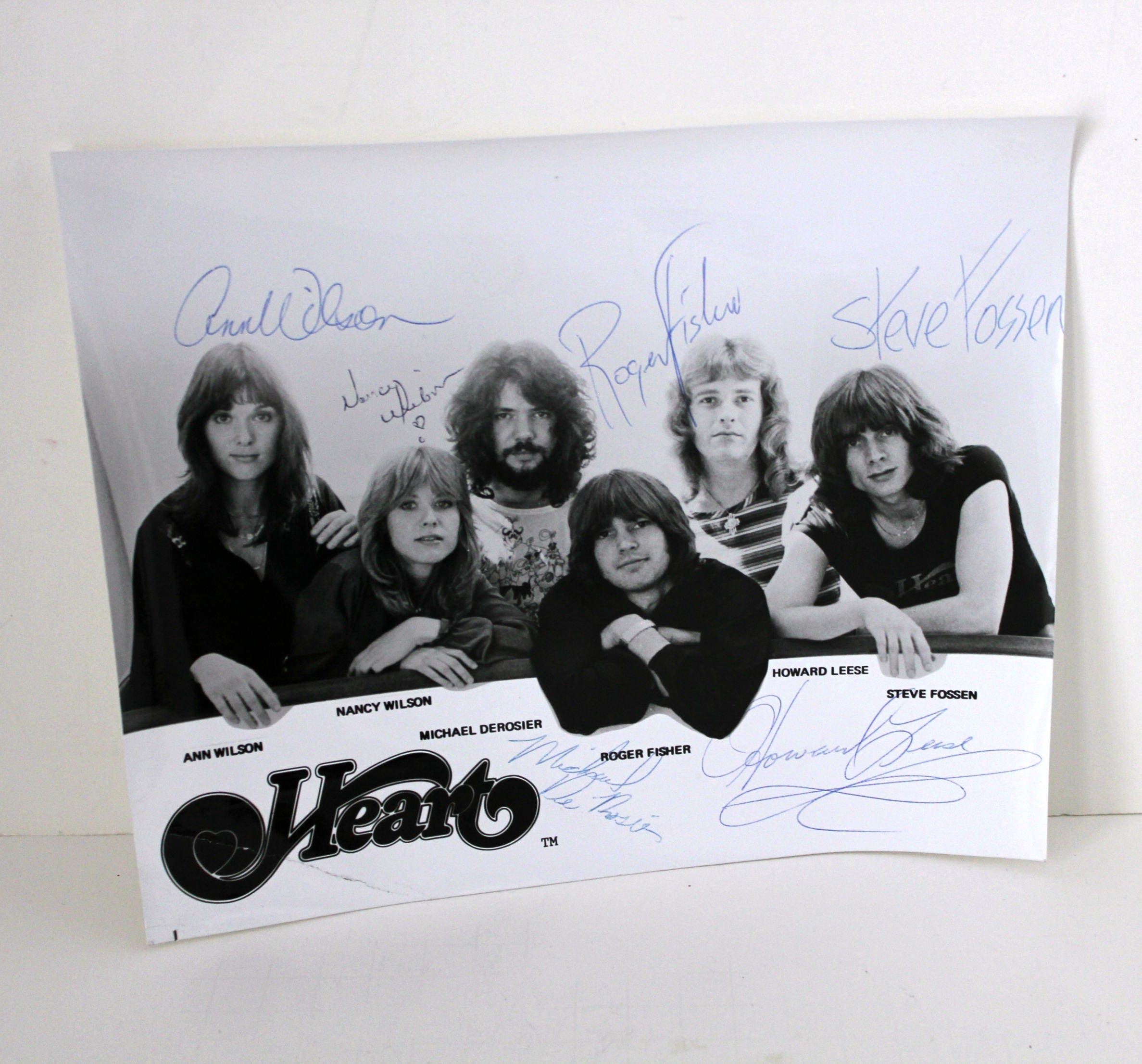 An original 1970s signed Heart promo photo featuring signatures from all band members. Those included: Ann Wilson, Nancy Wilson, Roger Fisher, Michael DeRosier, Howard Leese and Steve Fossen. The photo measures a bit over 9.25" x 7.75".