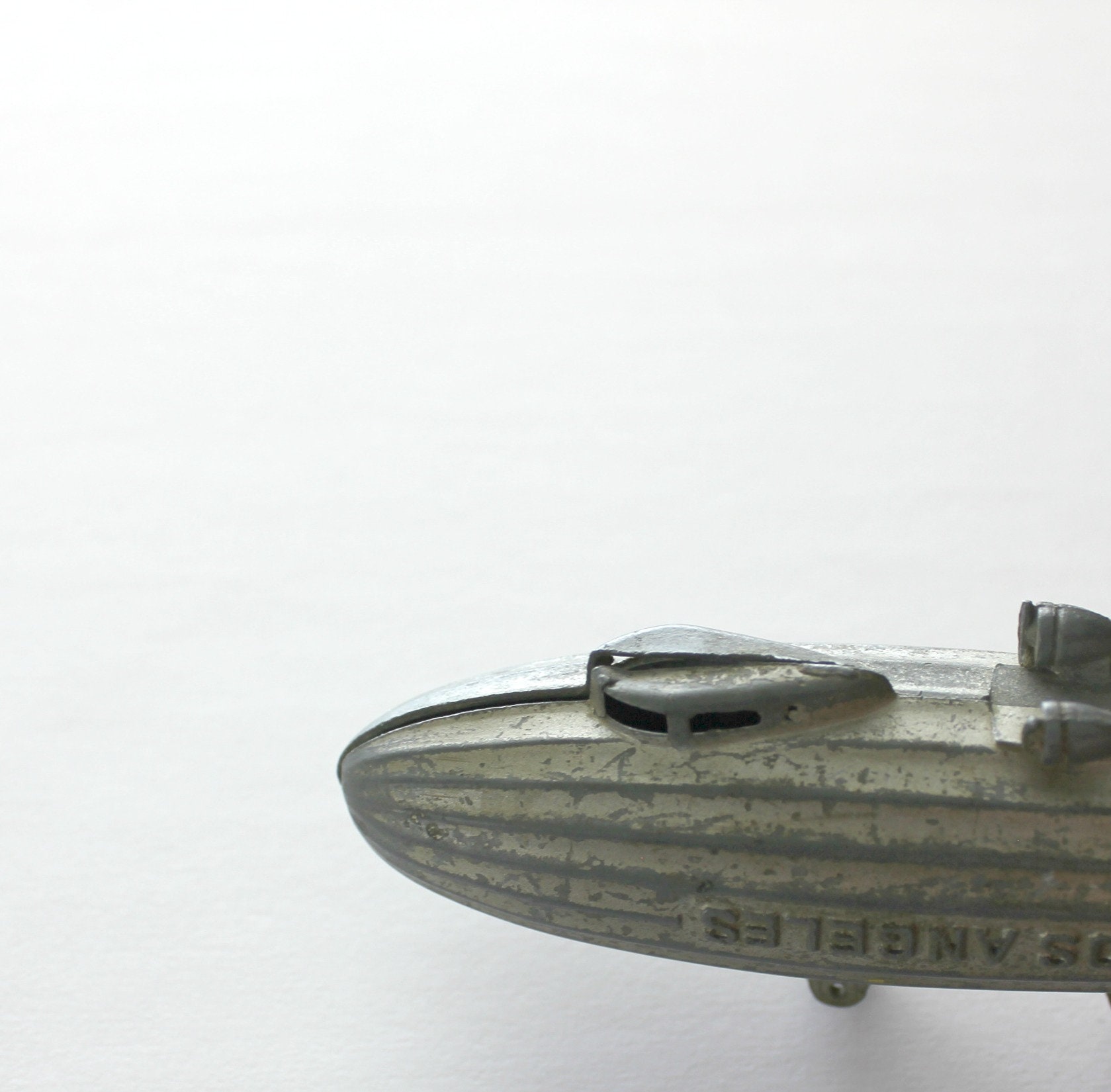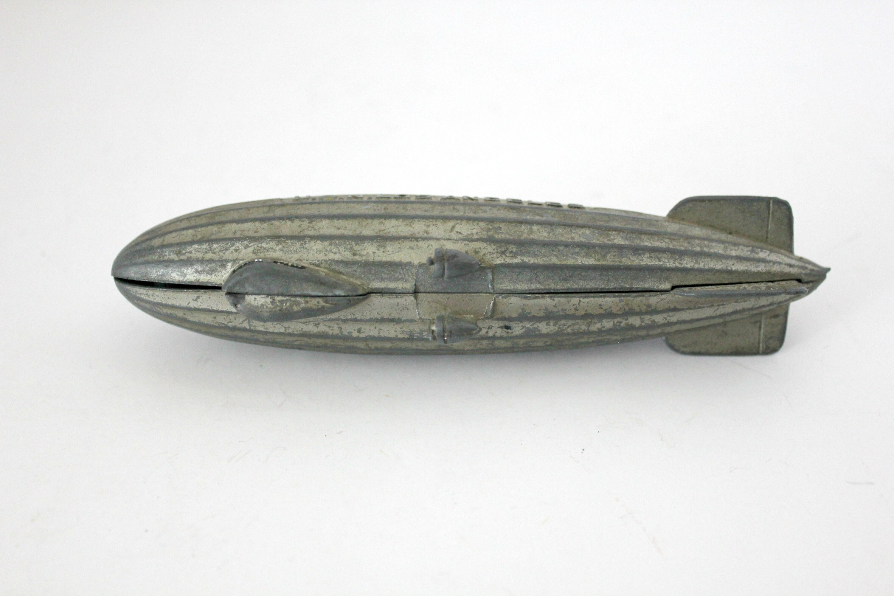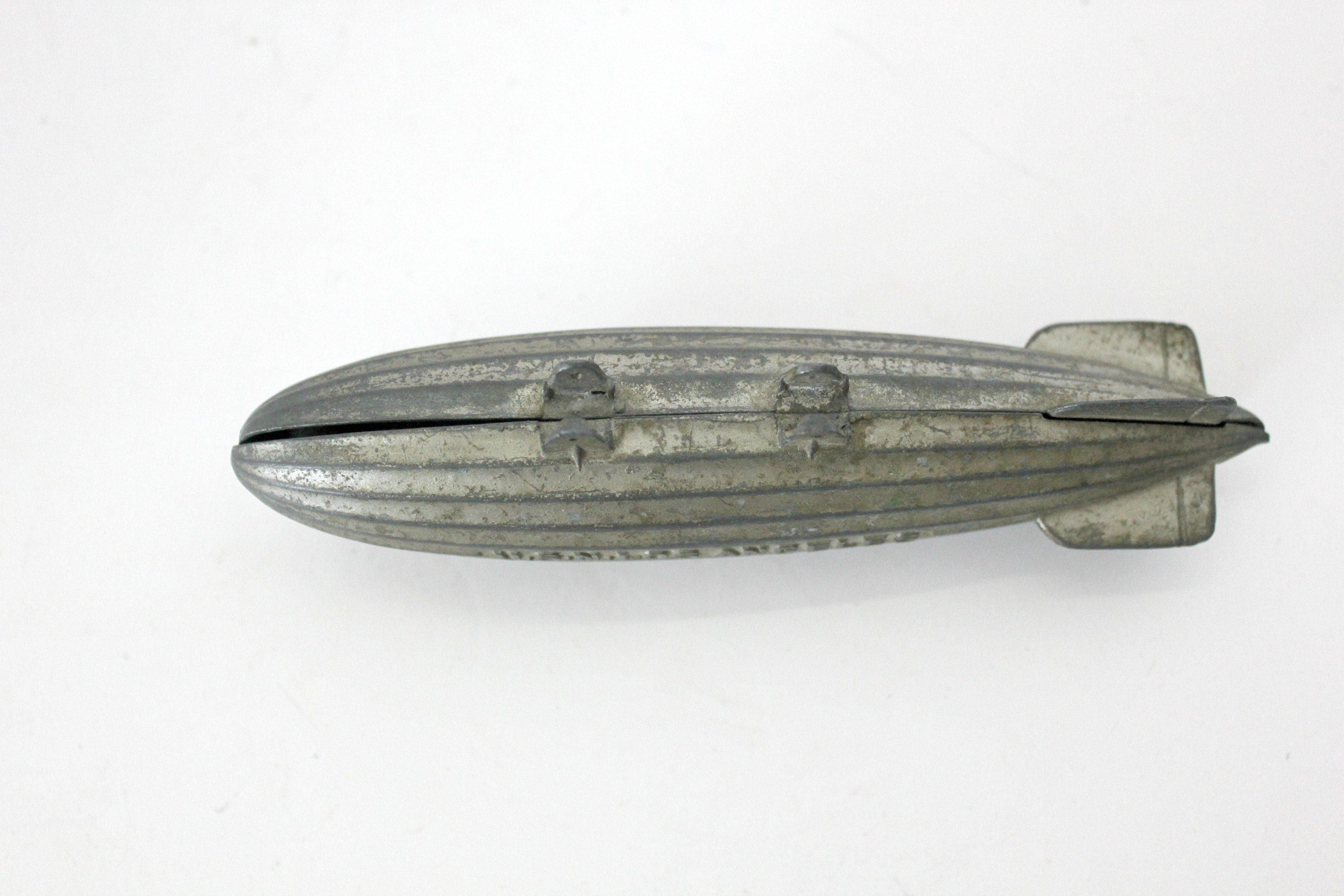 This is a 1930s vintage Tootsie Toy USN Los Angeles metal blimp or zeppelin. United States Navy aircraft.