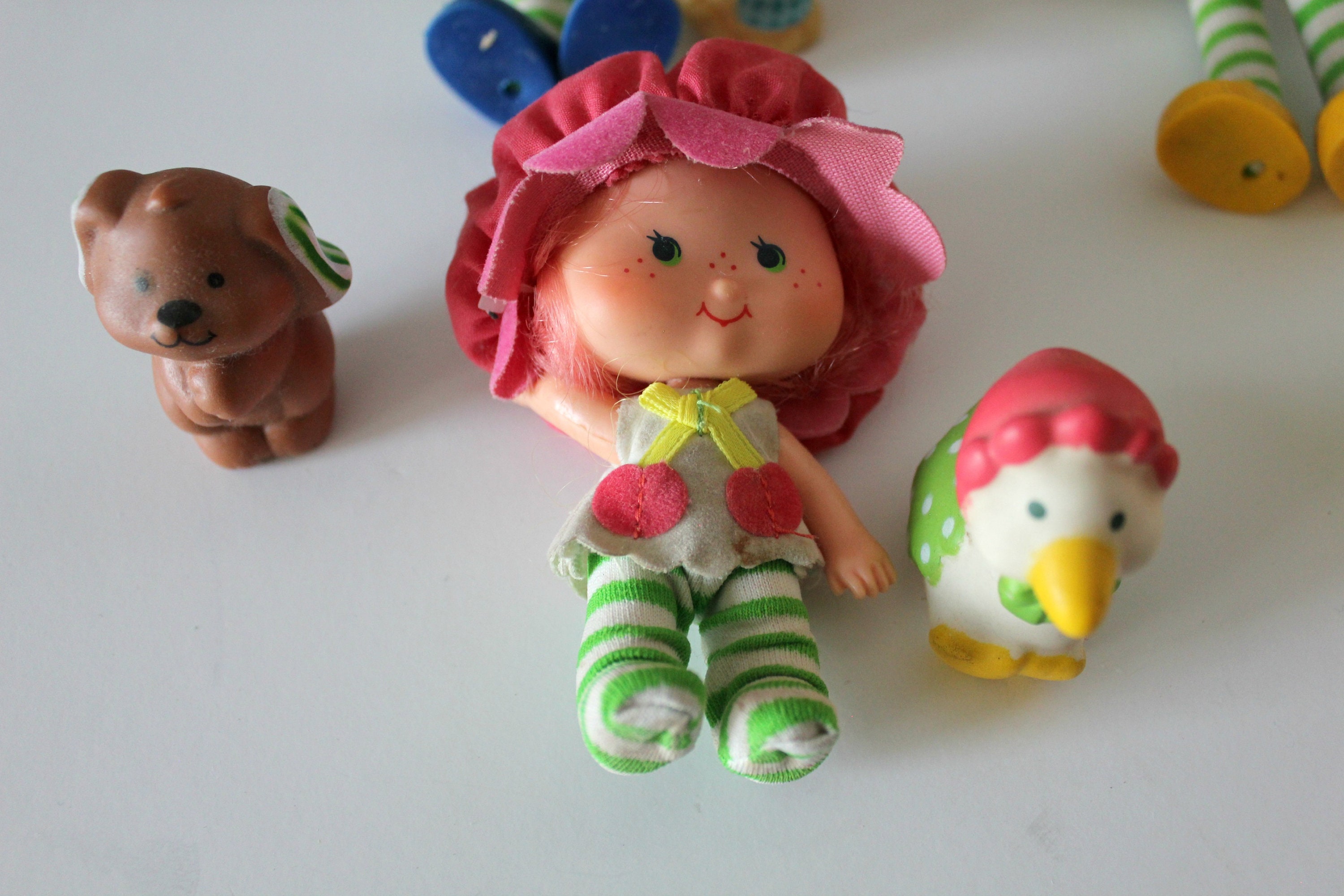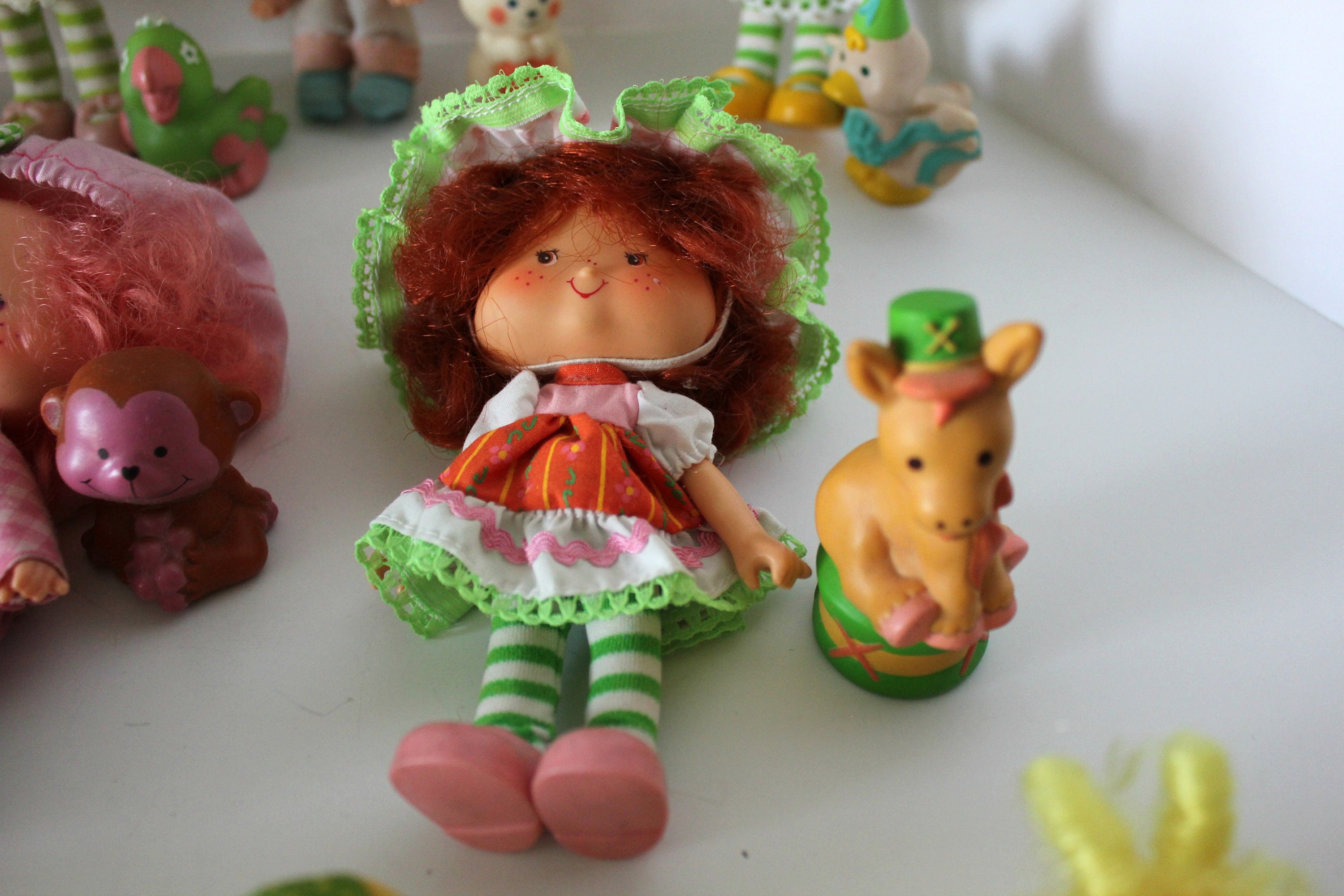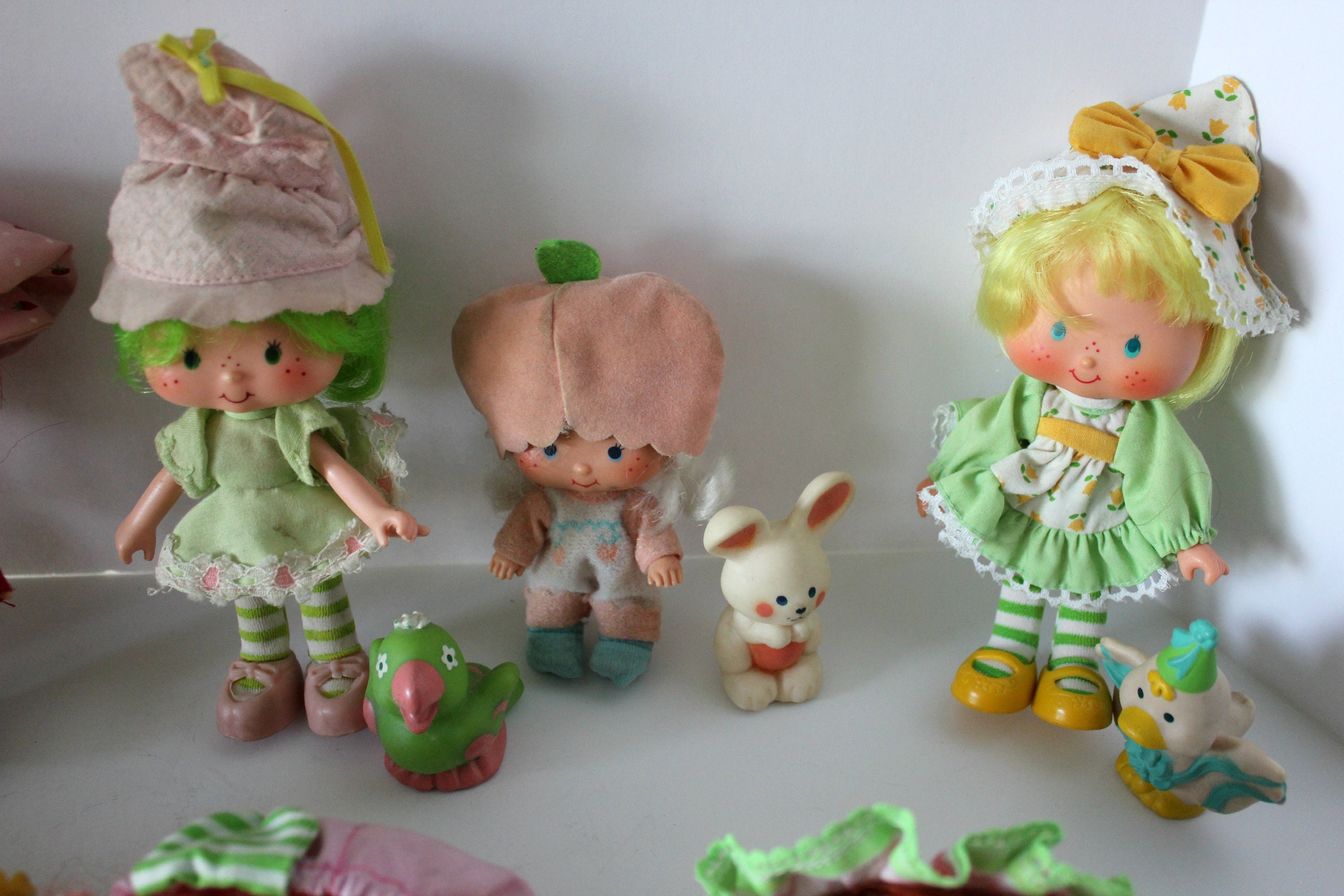 This is a nice lot of 1980s Strawberry Shortcake Dolls. Most also have a pet. All have been played with to some degree and there may be a sock or other small item missing. As far as I could identify, these are the dolls included along with their pets: