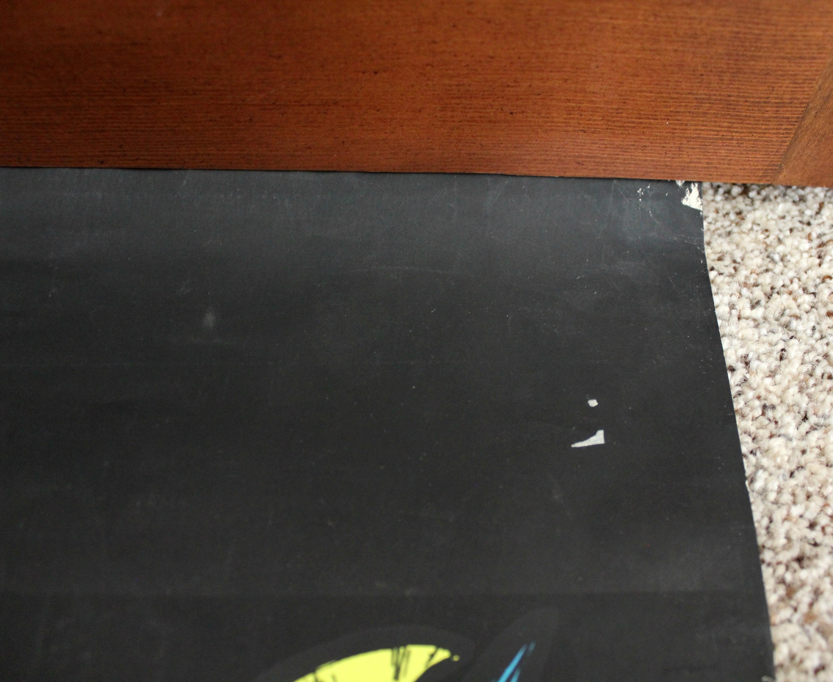 Condition is good with no tears or tack holes. Double sided sticky hangers were used and are still attached. Edges have some wear and the corners and one other spot near the upper corner as shown have some black missing. No major bends. Stored rolled.