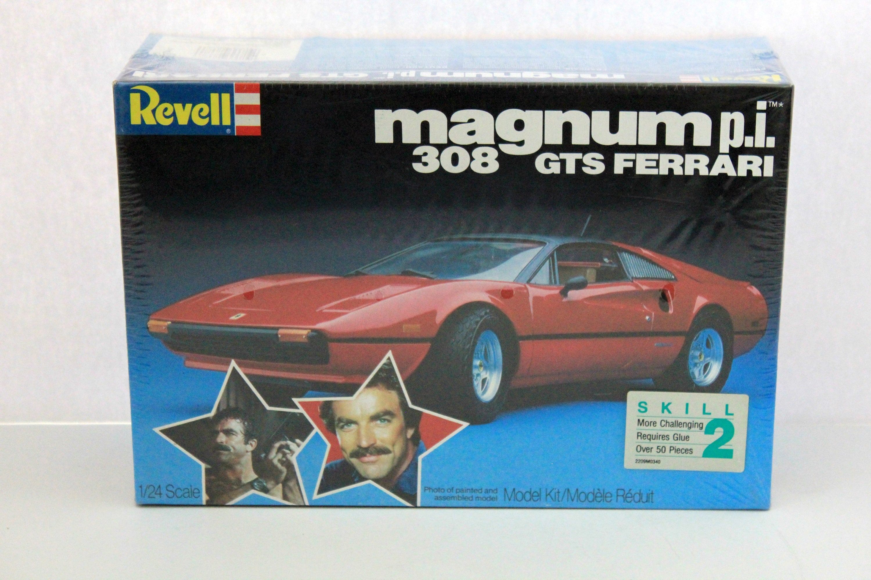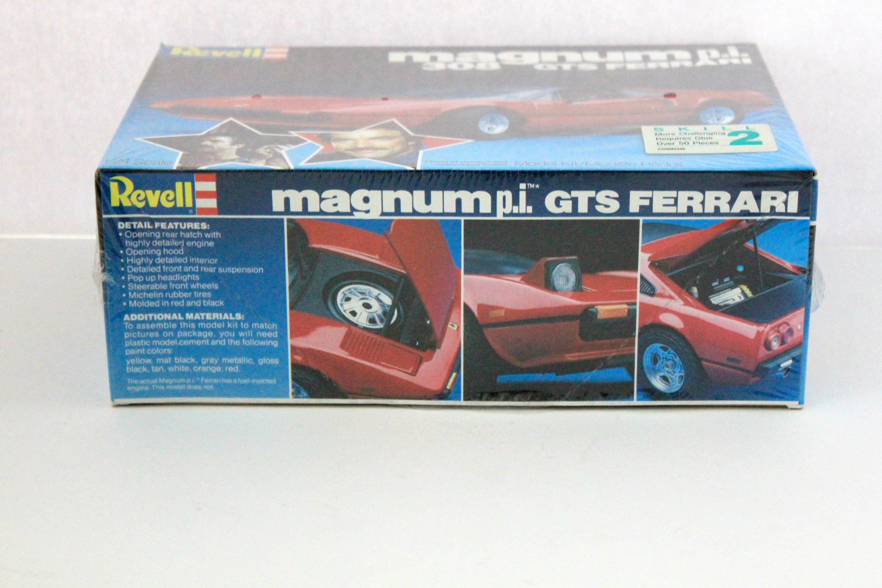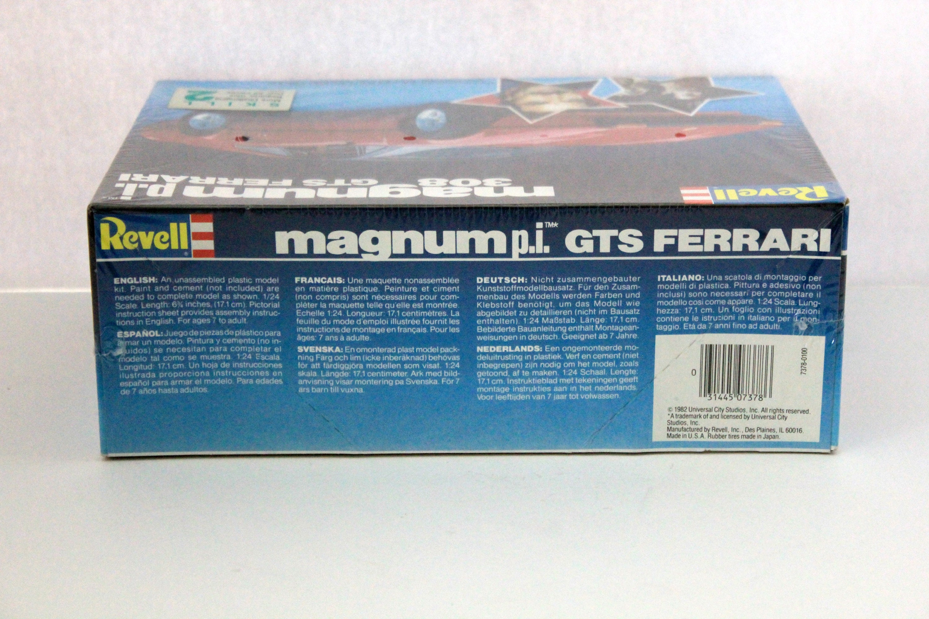 An NOS sealed vintage Revell 7378 Magnum PI GTS Ferrari 308 model kit. Copyright 1983.