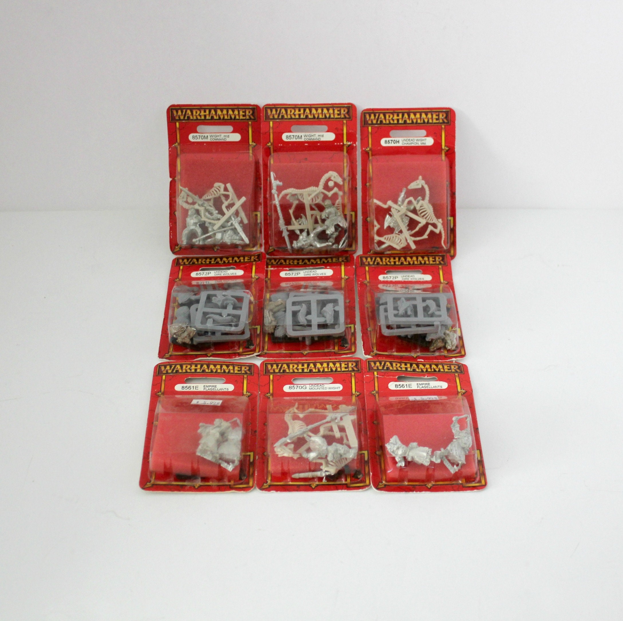 A lot of 9 vintage sealed Warhammer 40K RPG figurine playing pieces by Citadel Miniatures copyright 1997. Packaging has varying degrees of bends and wear but all are sealed.