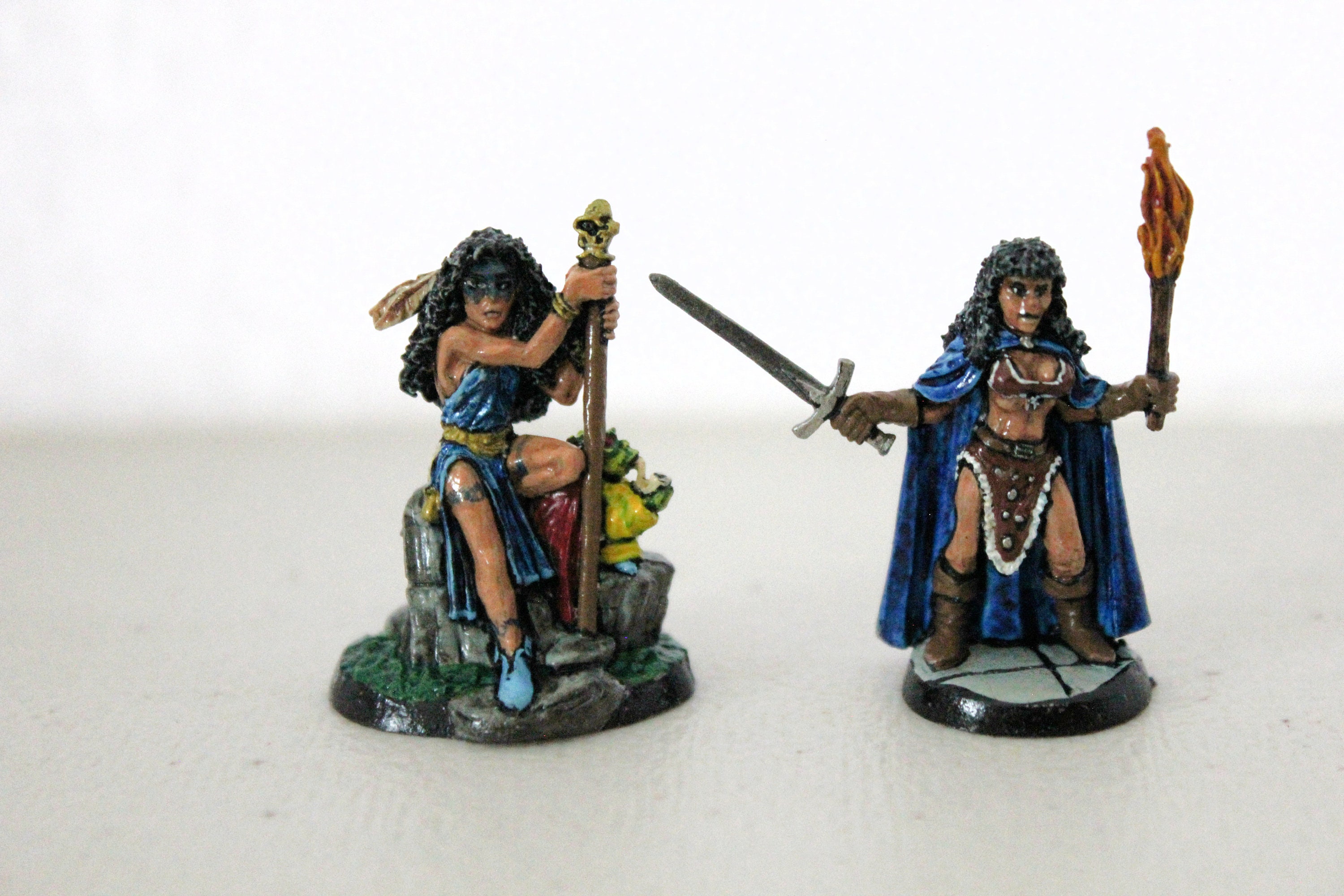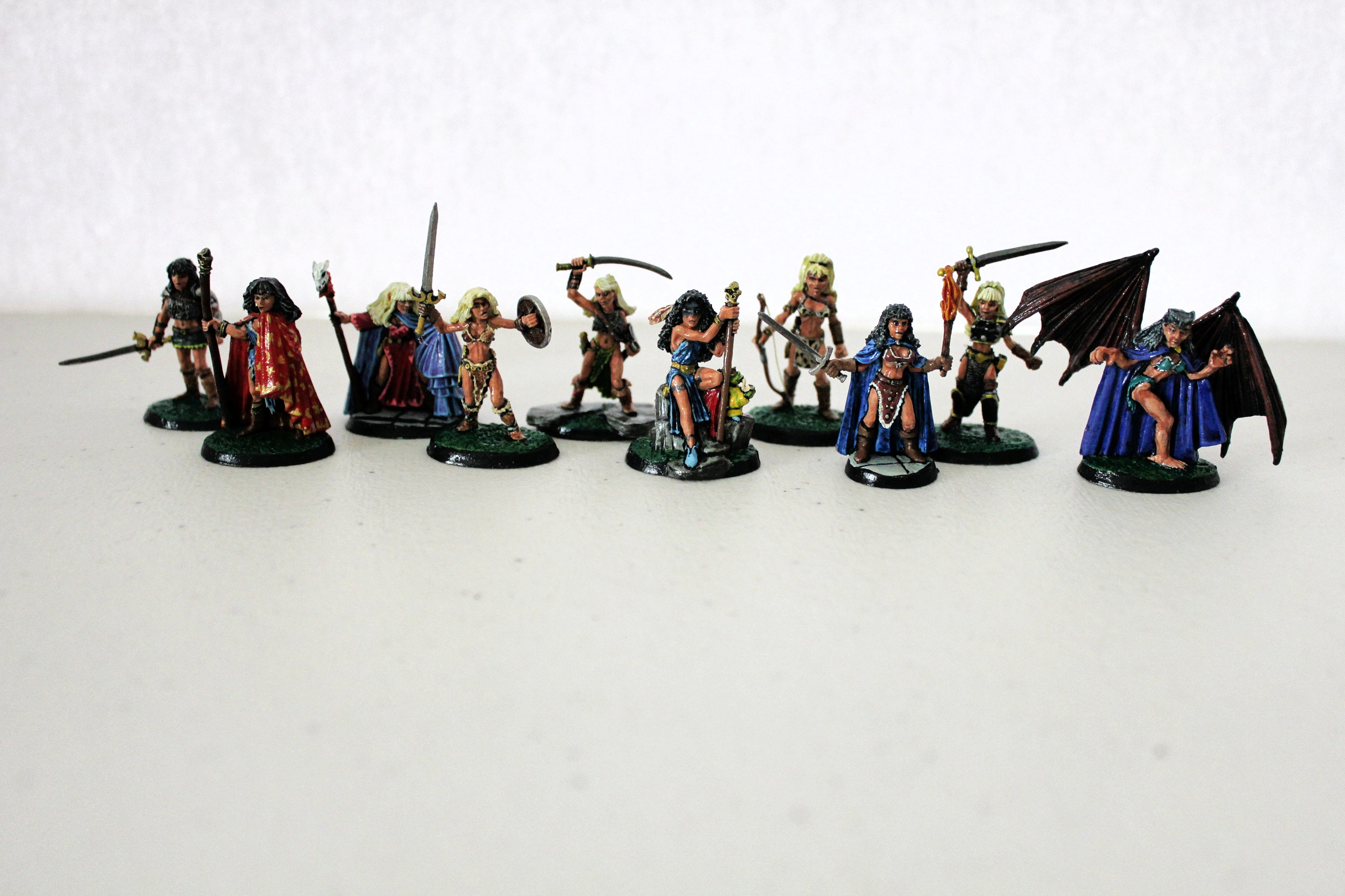 This is vintage set of 10 different female warrior metal RPG metal miniature figures by Ral Partha Enterprises. All are marked on the bottom and are copyright 1991 or 1992. Role playing game figures for Dungeons and Dragons I believe.