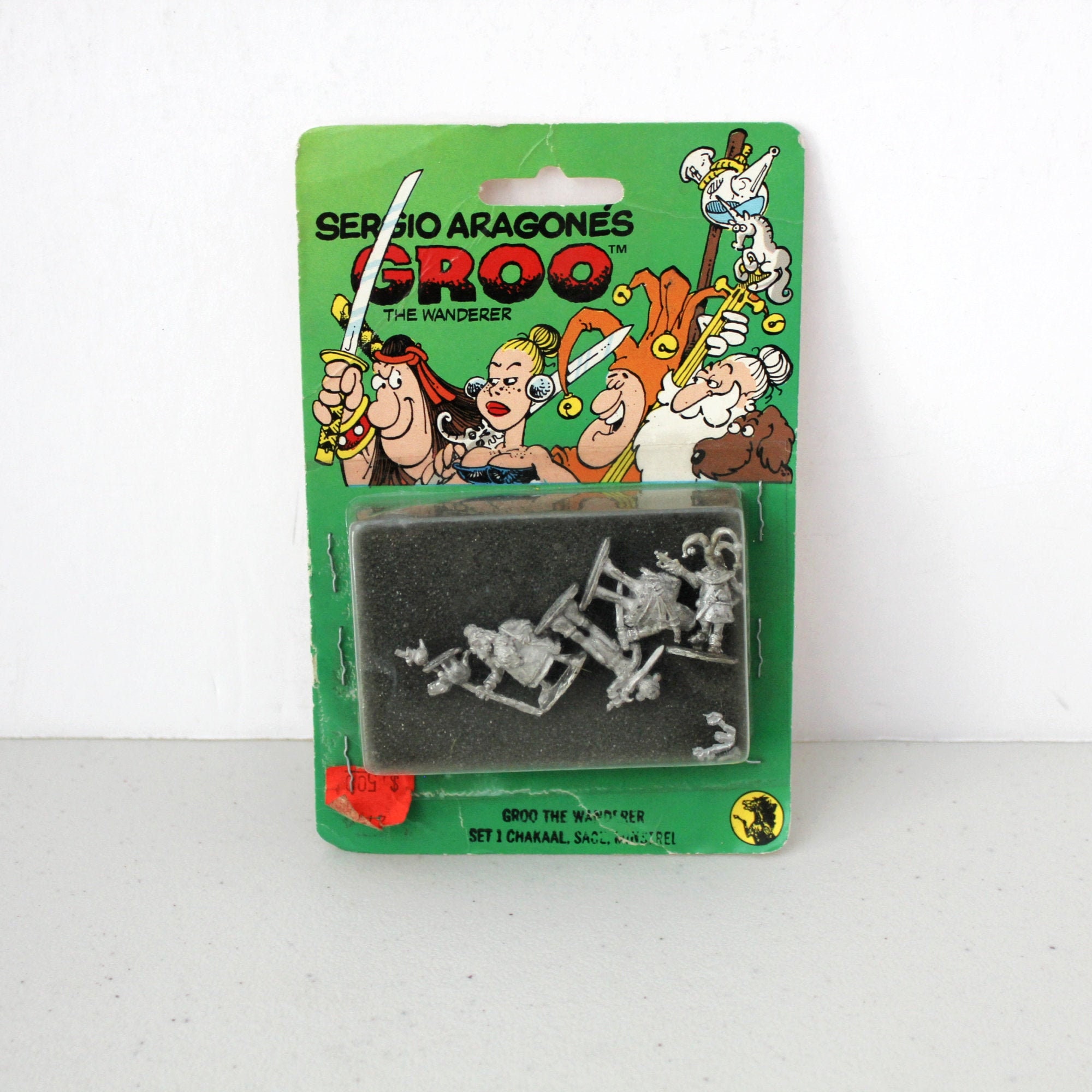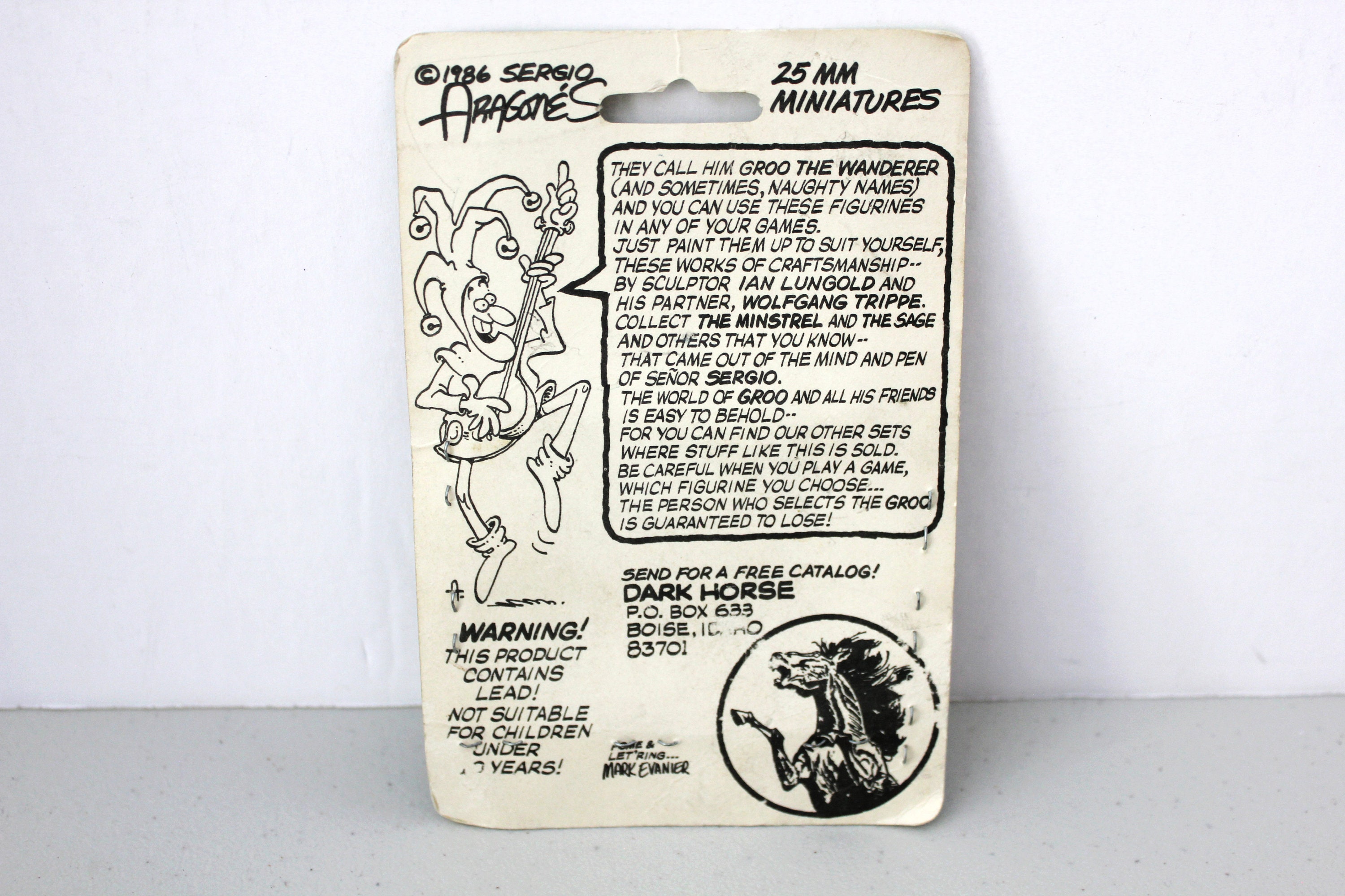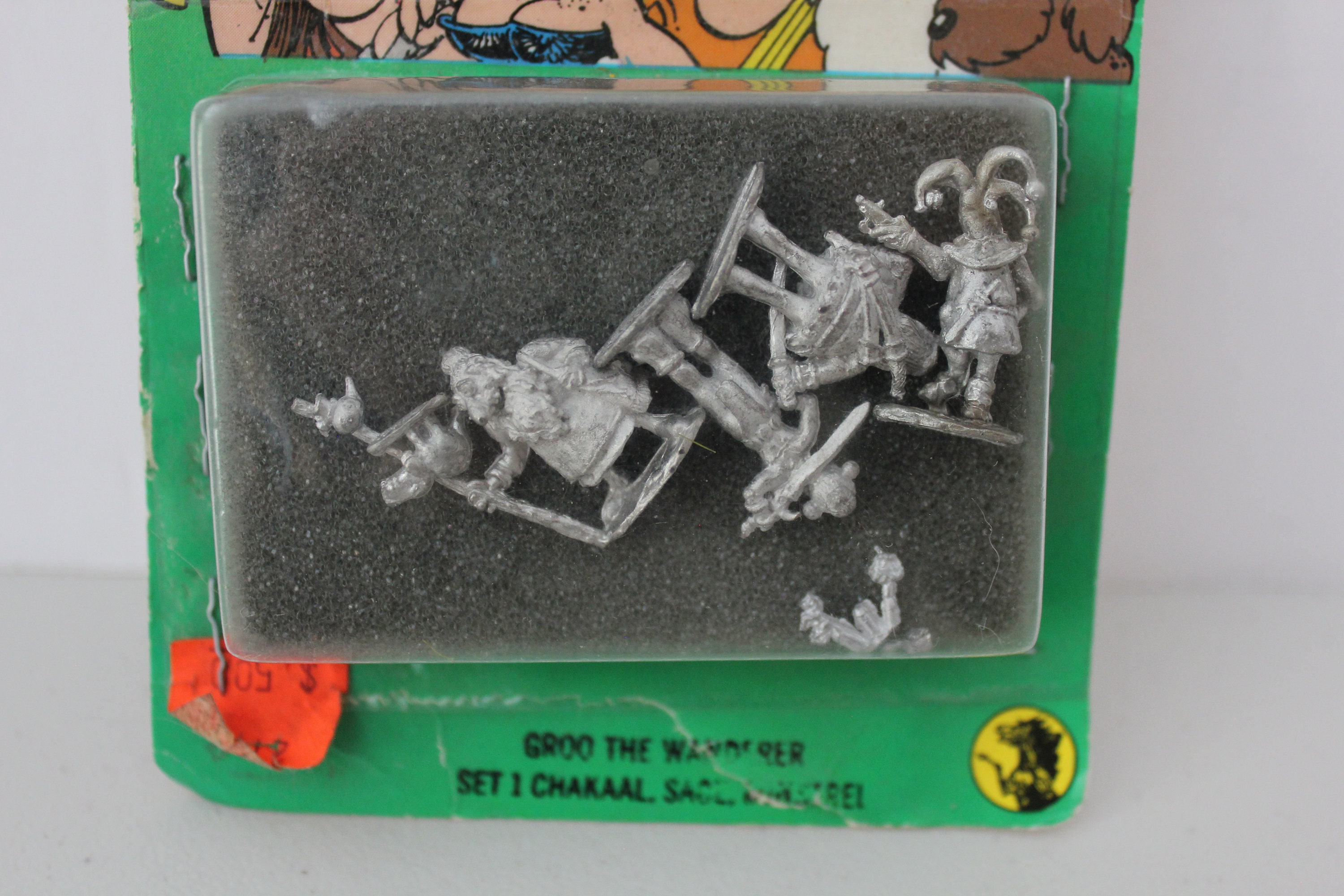 A 1980s set 1 of 25mm Dark Horse miniatures Sergio Aragones Groo The Wanderer, Chakaal, Sage and Minstrel.